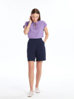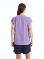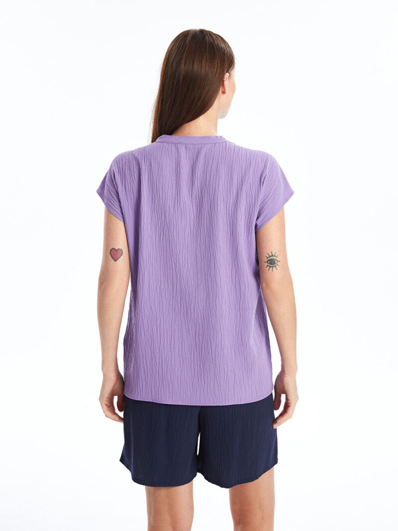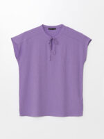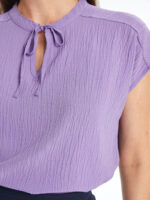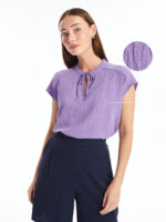 🛍 LCWAIKIKI Classic Mor Bağlamalı Yaka Düz Kısa Kollu Kadın Bluz