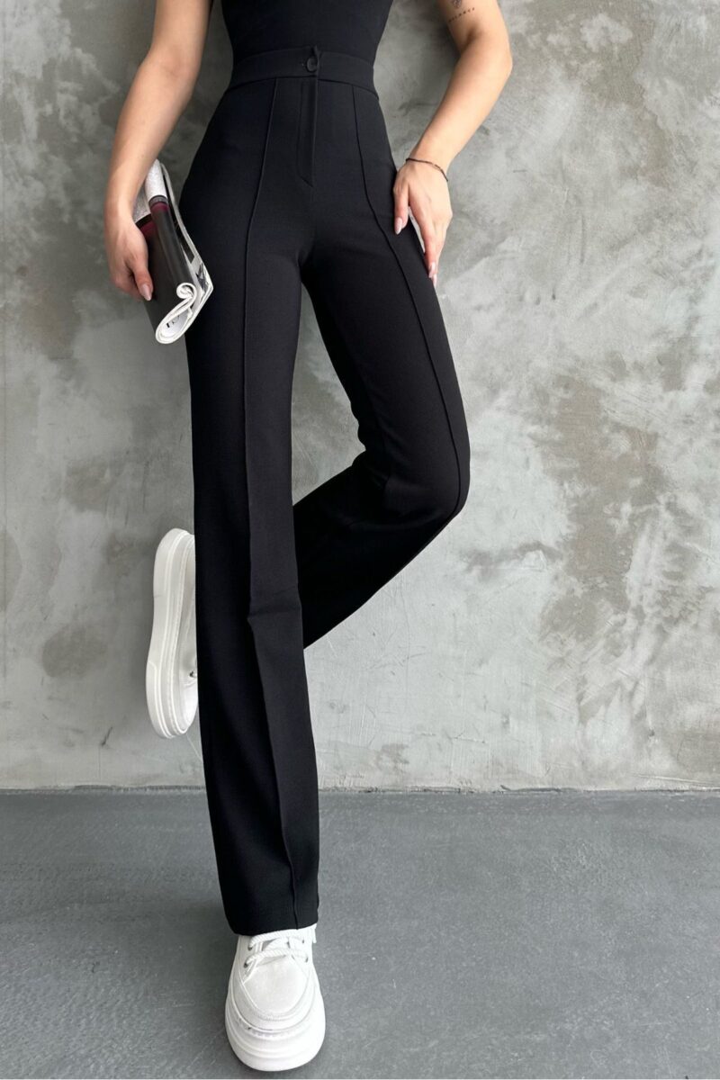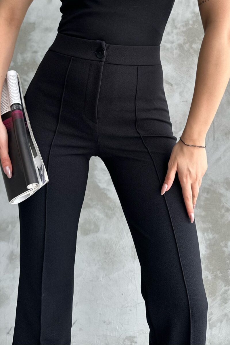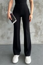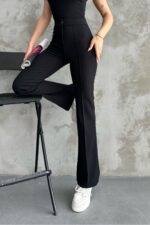 🛍 macharel jeans Kadın Siyah Yüksek Bel Toparlayıcı Ispanyol Paça Palazzo Pantolon