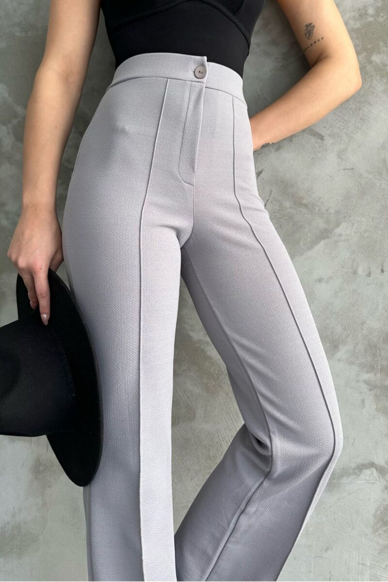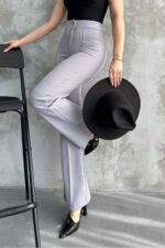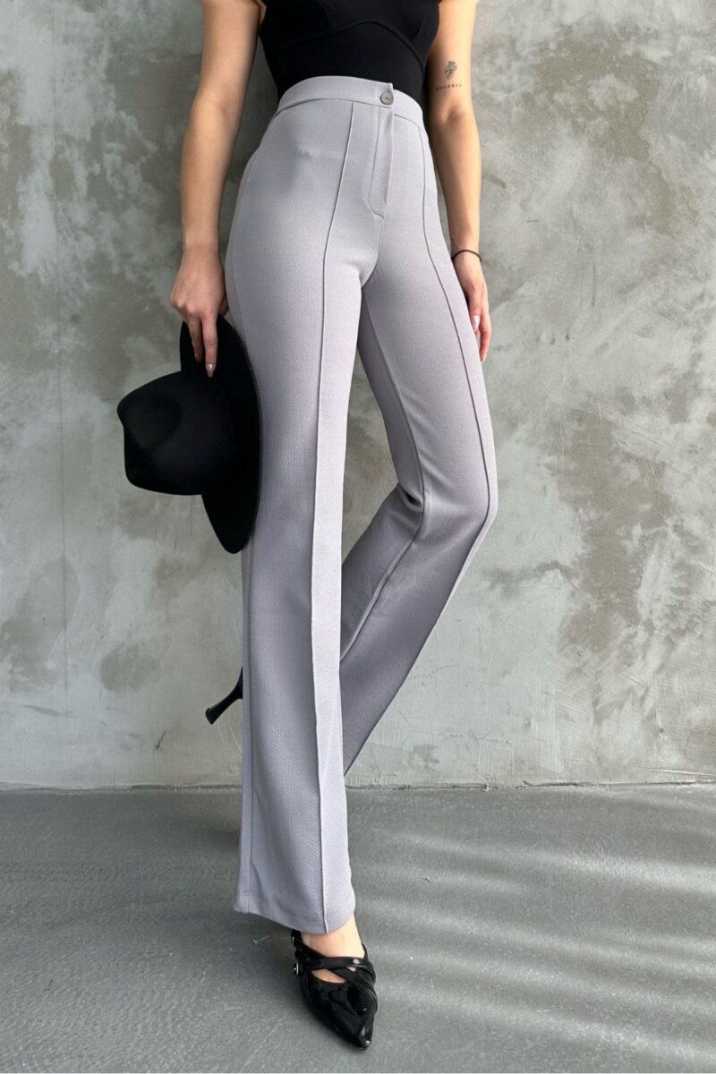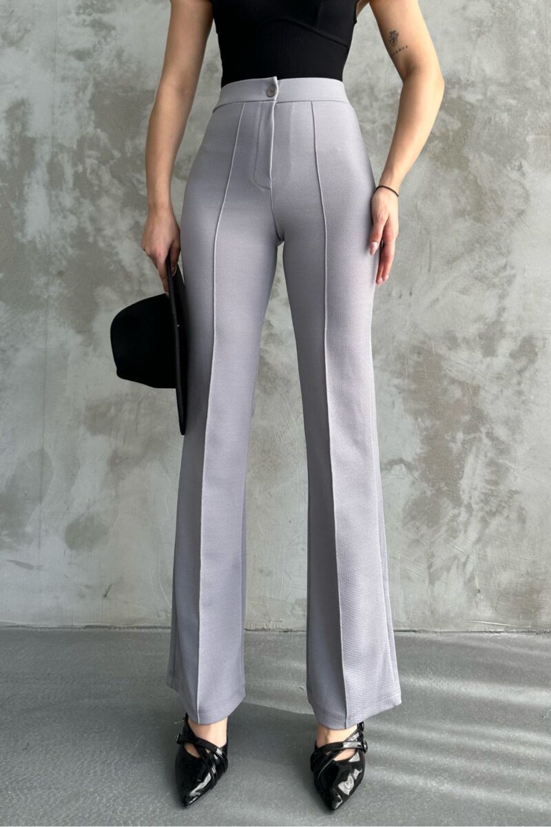macharel jeans Kadın Yüksek Bel Toparlayıcı Ispanyol Paça Palazzo Gri Pantolon