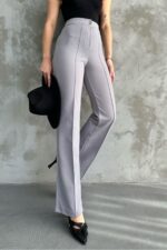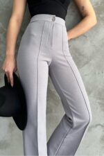 🛍 macharel jeans Kadın Yüksek Bel Toparlayıcı Ispanyol Paça Palazzo Gri Pantolon