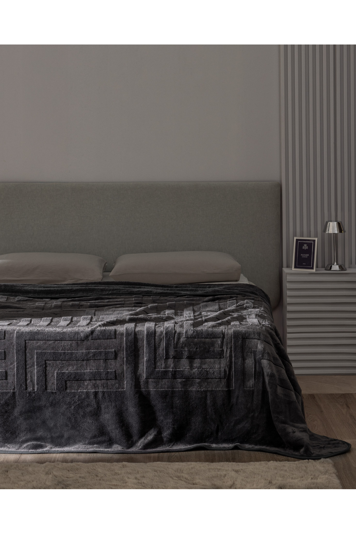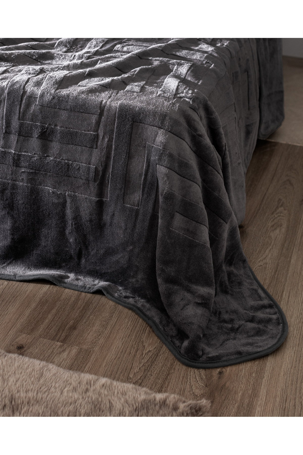 MadameCoco Clementine Cift Kisilik Vizon Emboss Battaniye Antrasit
