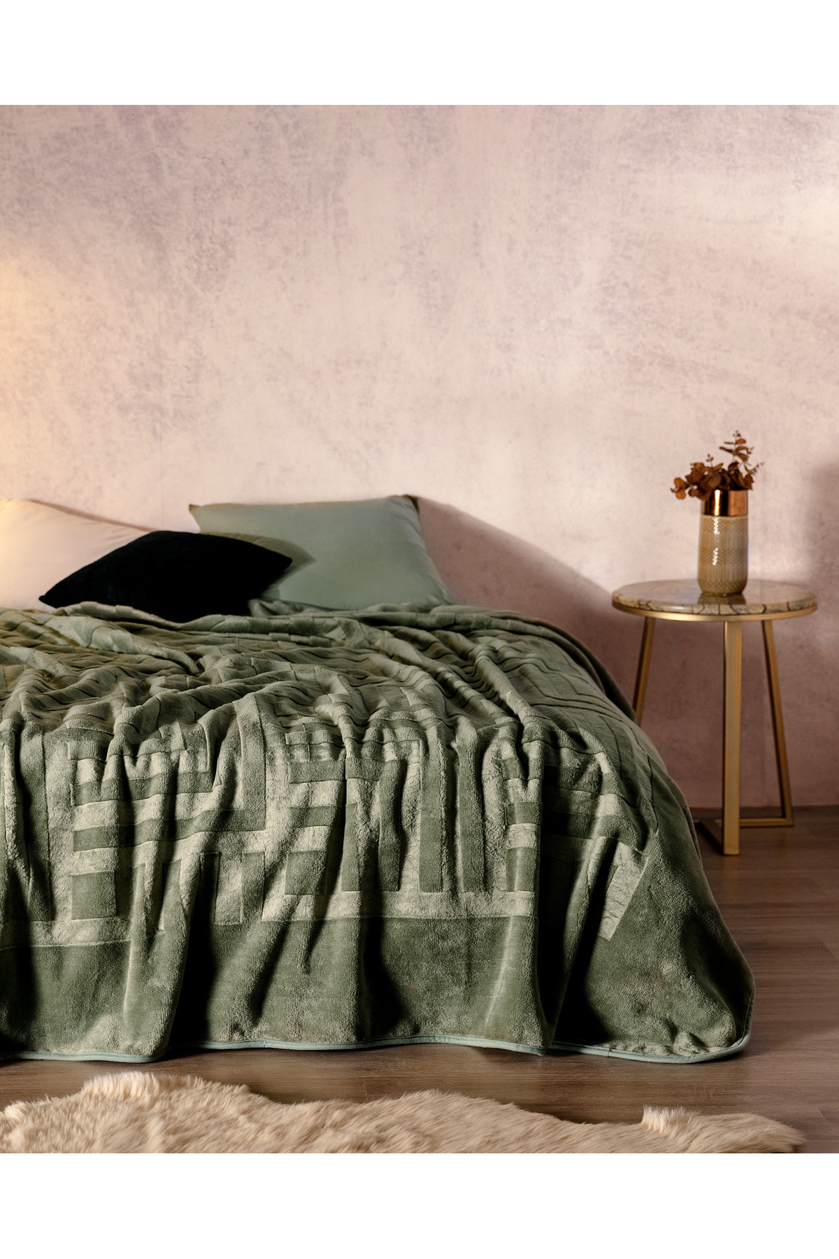 MadameCoco Clementine Vizon Emboss Cift Kisilik Battaniye Haki