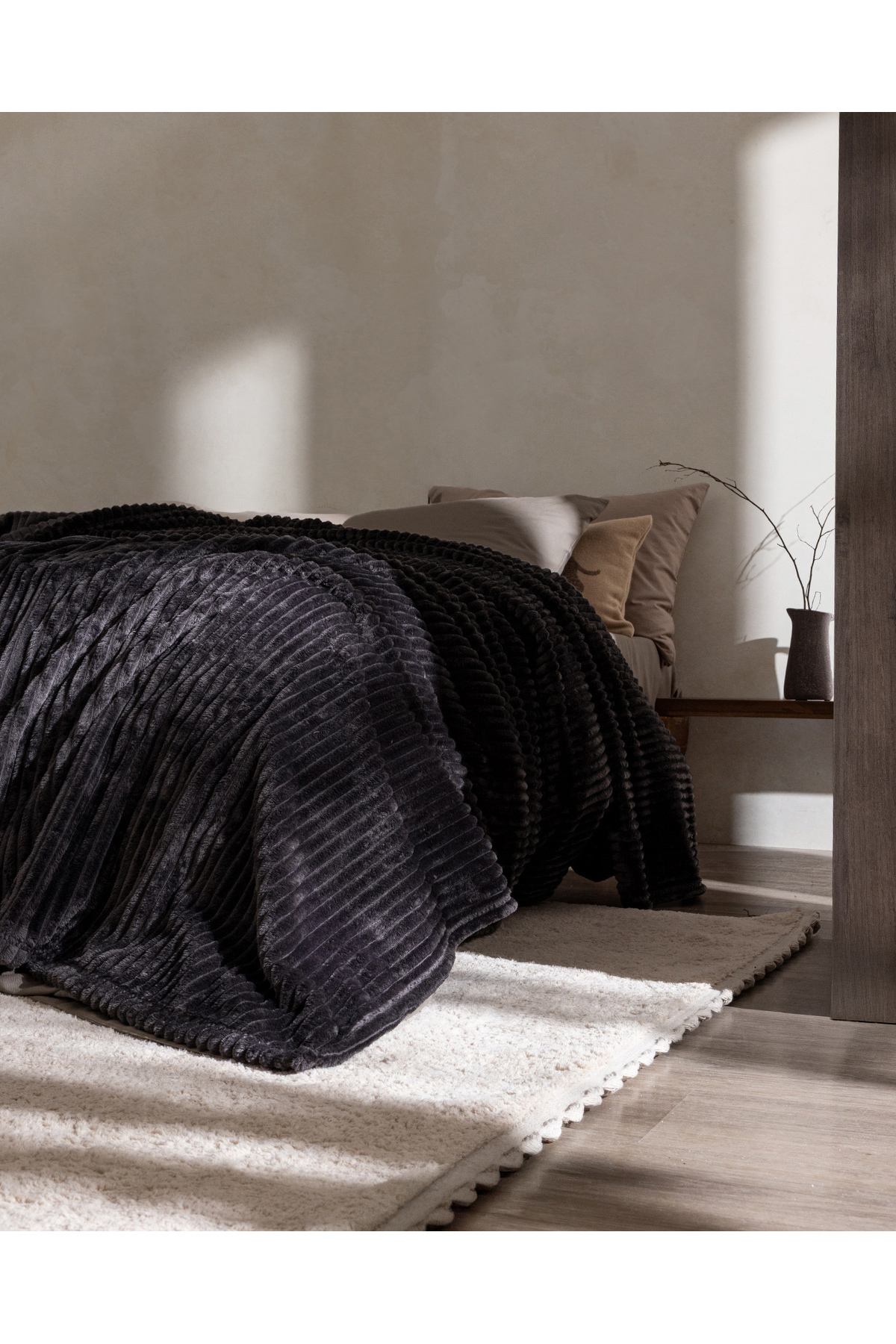 MadameCoco Corbeau Cift Kisilik Welsoft Duz Battaniye Antrasit