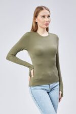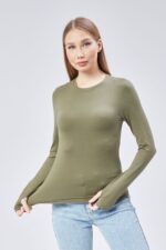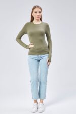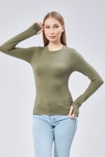 Maison La Femme Haki Bisiklet Yaka Basic Uzun Kollu Parmak Geçirme Detaylı Body