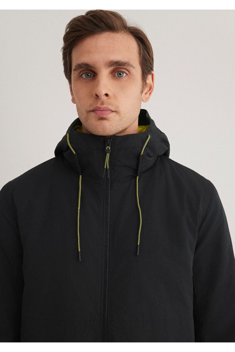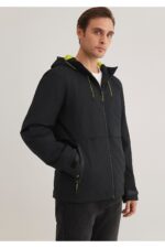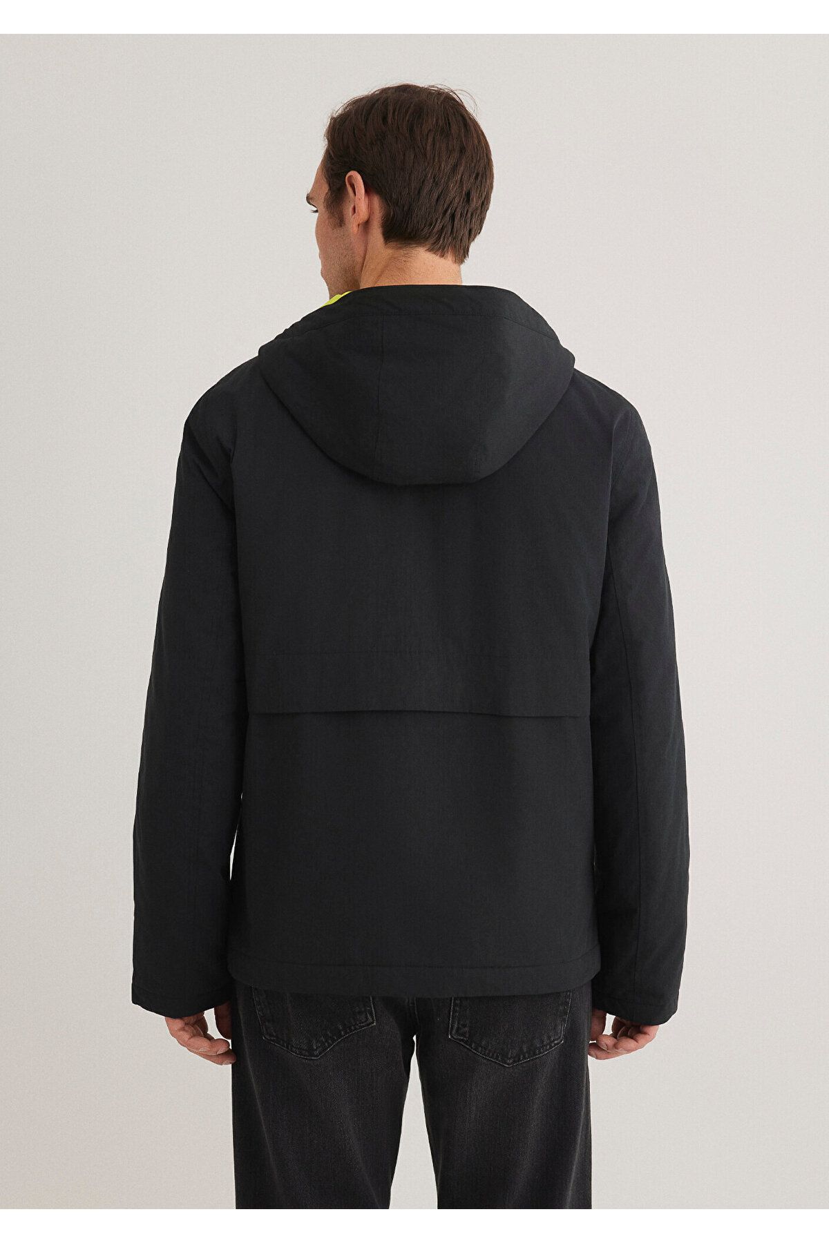 🛍 Mavi Kapüşonlu Siyah Ceket Slim Fit / Dar Kesim 0110268-900