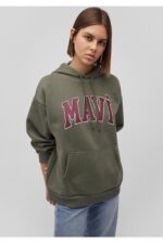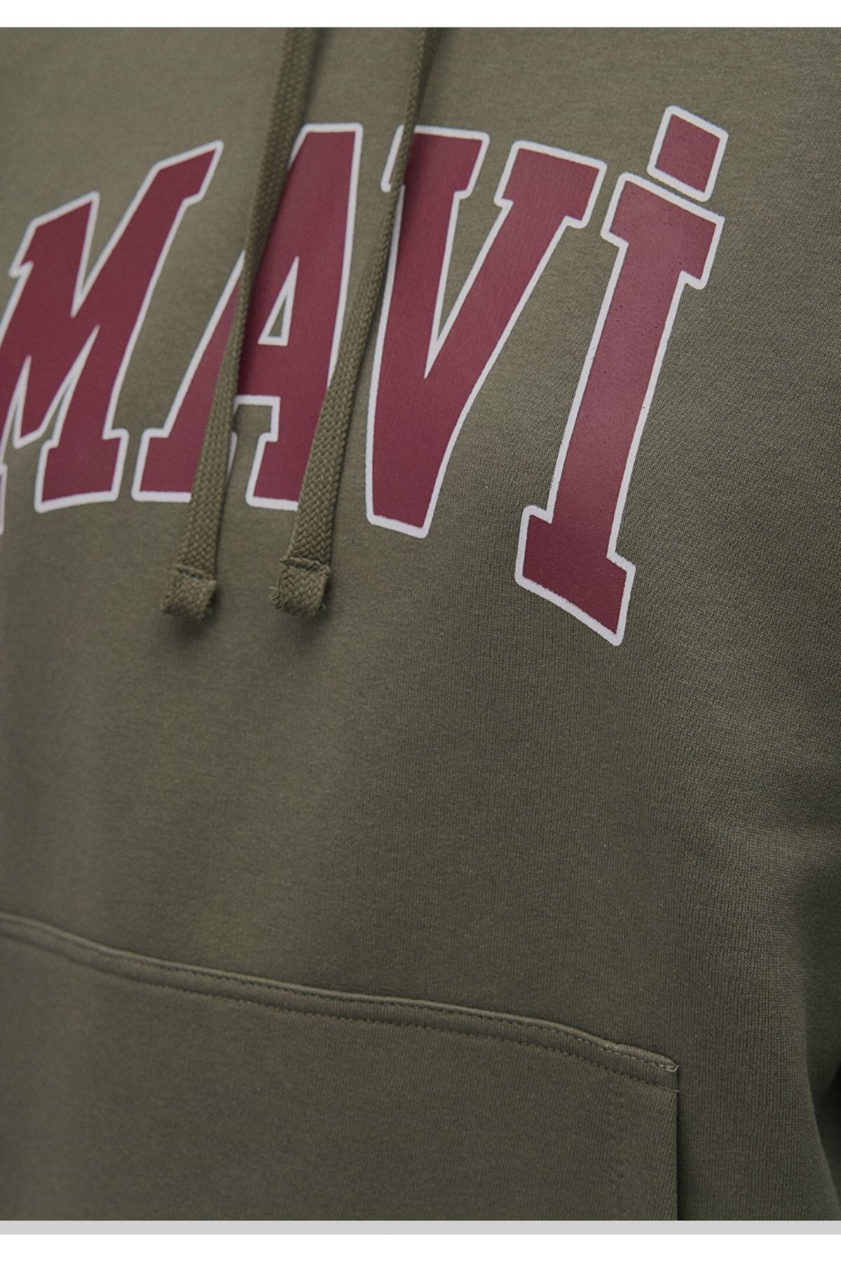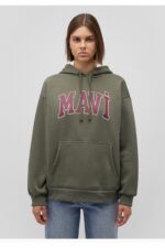 Mavi logo baskılı kapüşonlu gri oversize sweatshirt