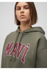 Mavi Logo Baskılı Kapüşonlu Haki Sweatshirt Oversize / Geniş Kesim 1600361-71581