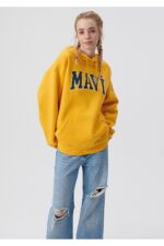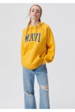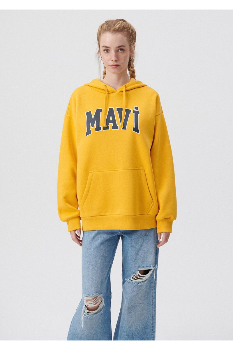 🛍 Mavi Logo Baskılı Kapüşonlu Sarı Sweatshirt 1600361-71340