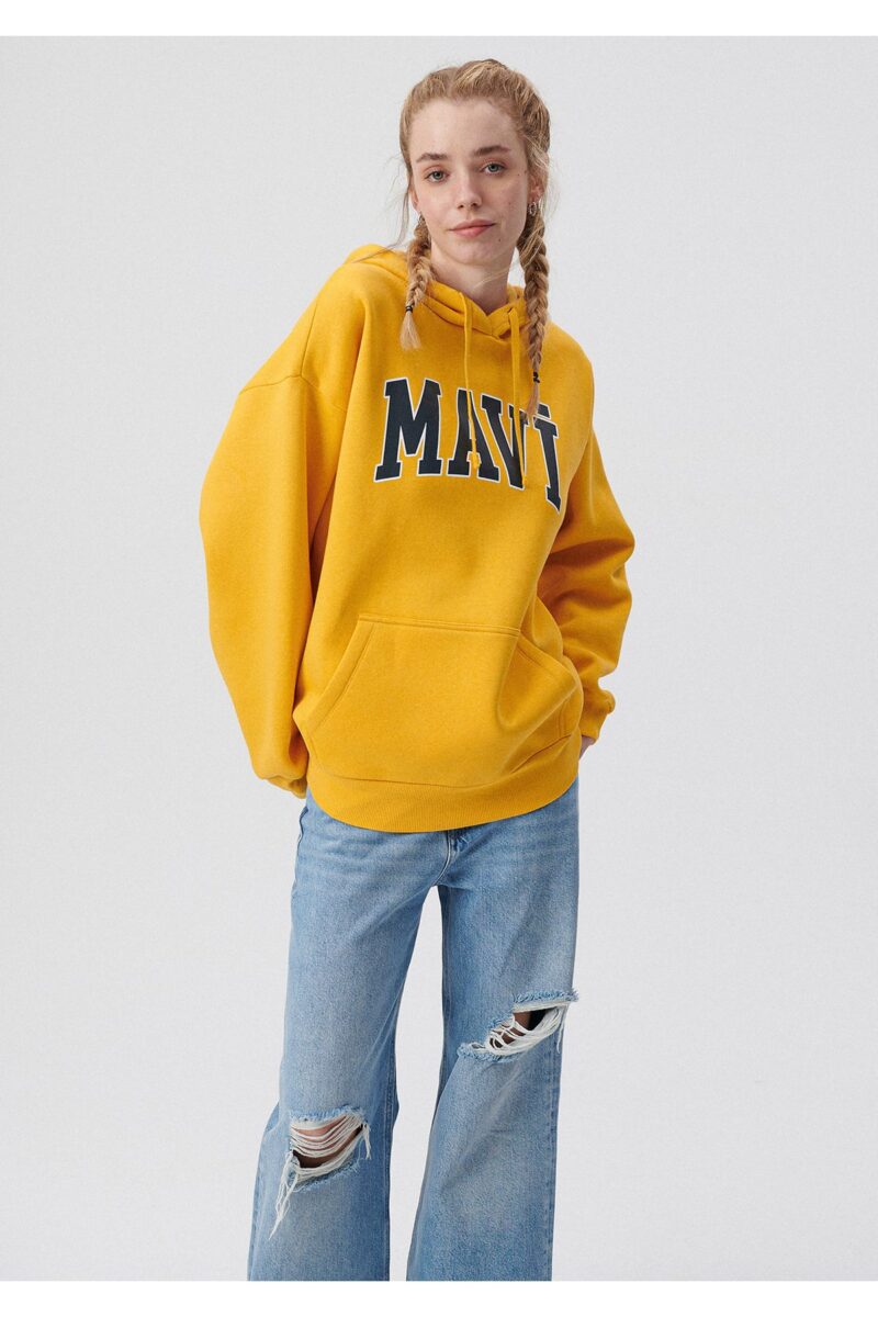 Mavi Logo Baskılı Kapüşonlu Sarı Sweatshirt 1600361-71340