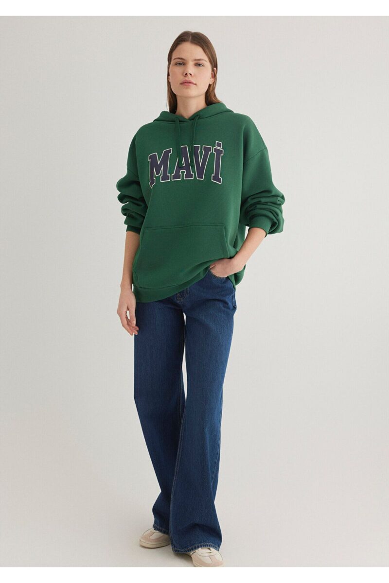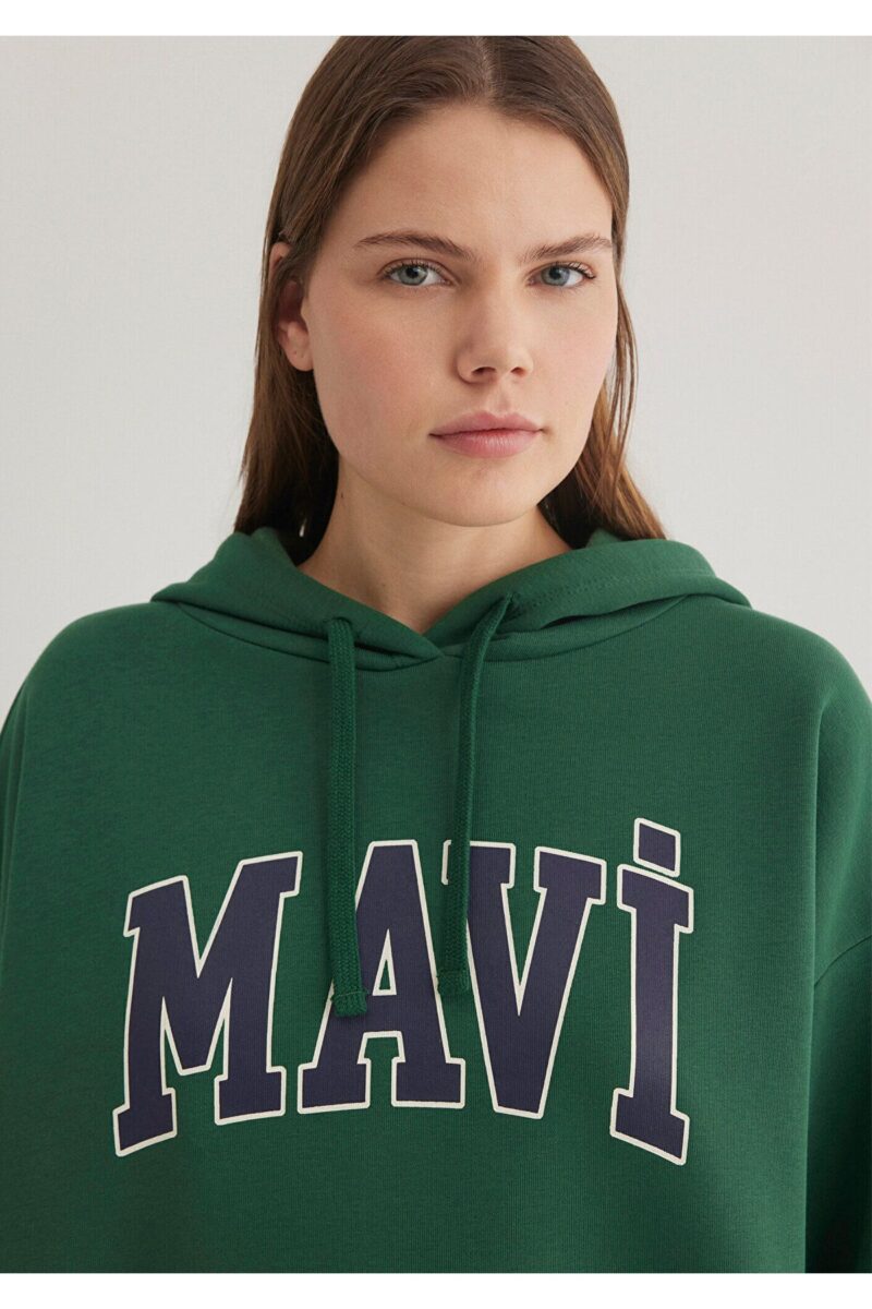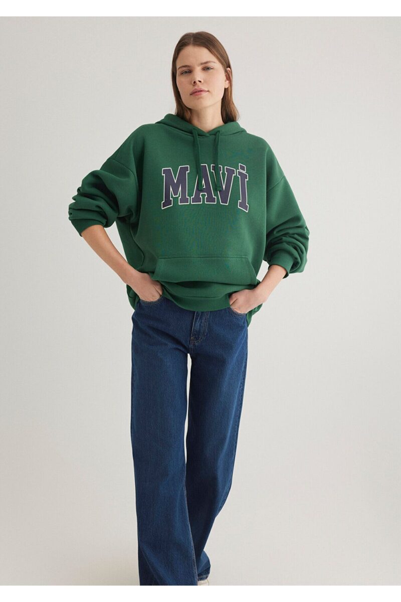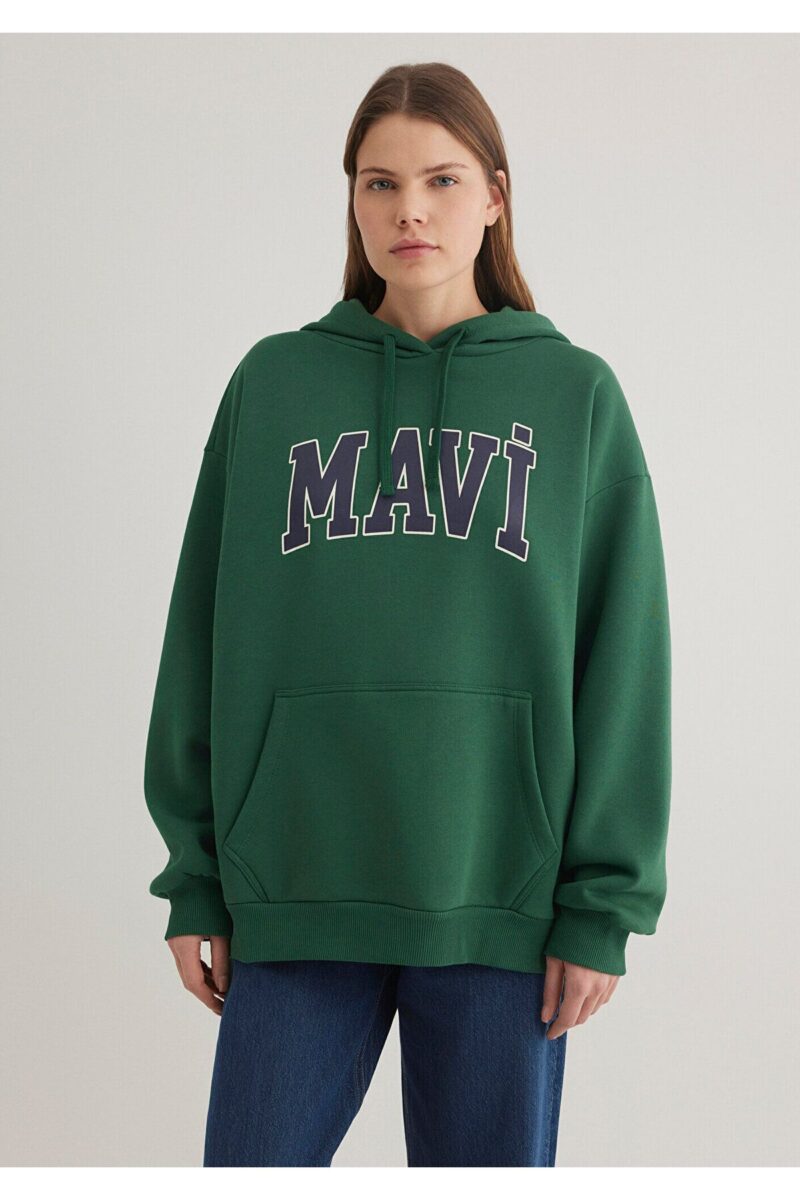 🛍 Mavi Logo Baskılı Kapüşonlu Yeşil Sweatshirt 1600361-71892