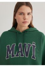 Mavi Logo Baskılı Kapüşonlu Yeşil Sweatshirt 1600361-71892