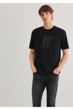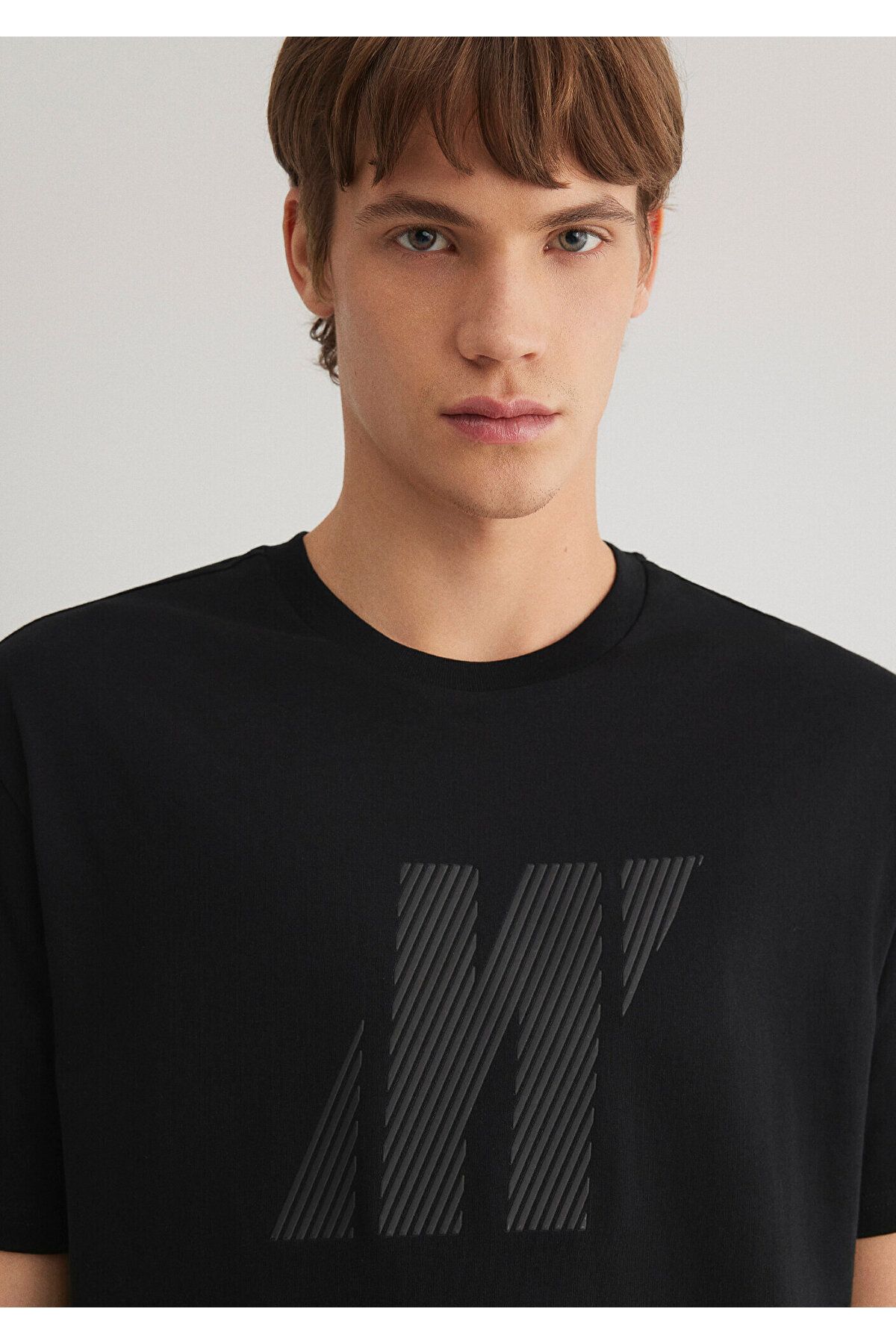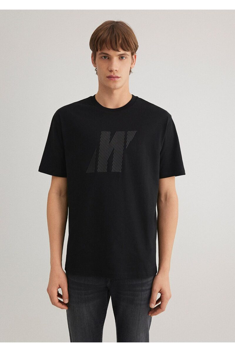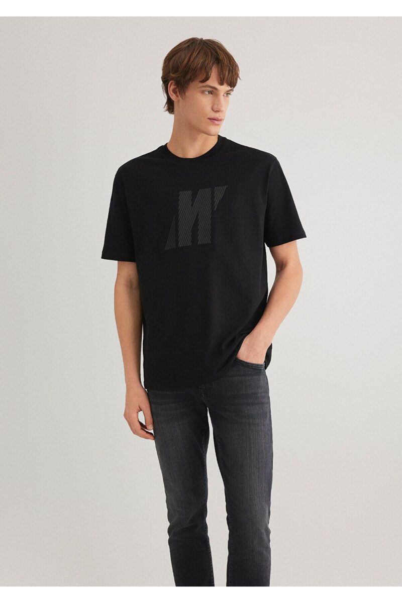 🛍 Mavi Pro Logo Baskılı Siyah Tişört Regular Fit / Normal Kesim 067034-900