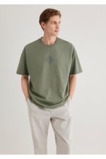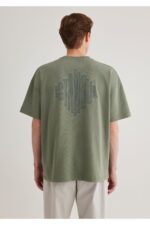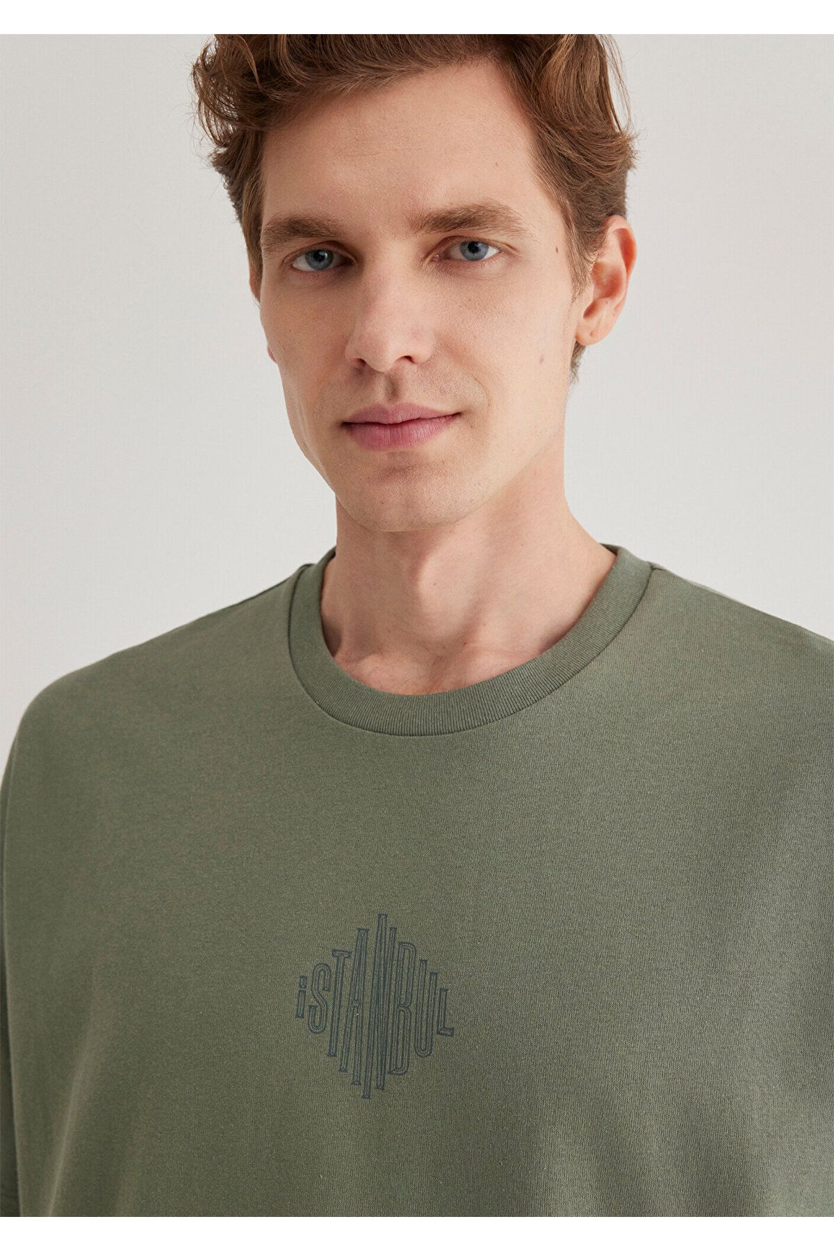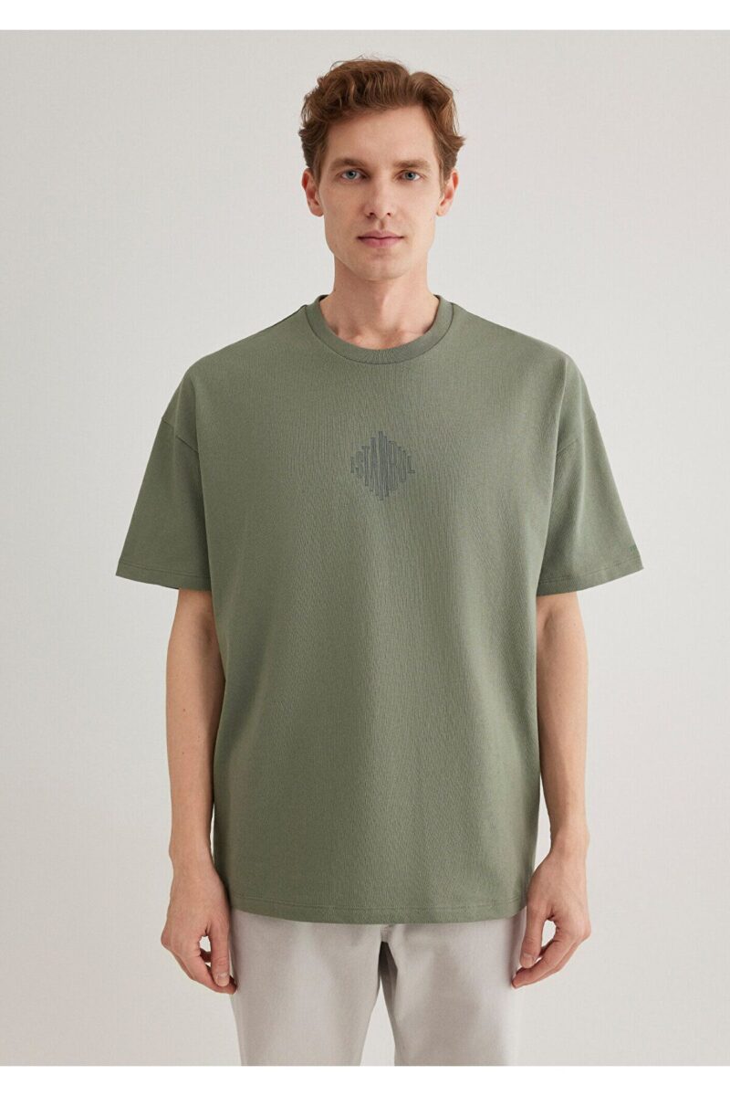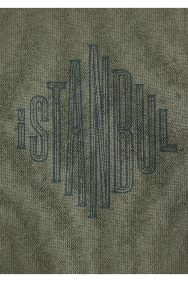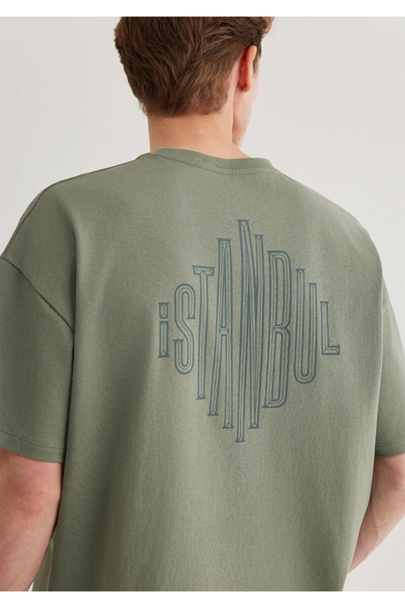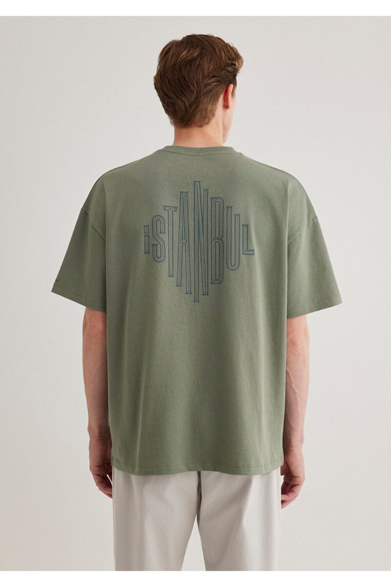 Mavi Sırt Baskılı Haki Istanbul Tişört Oversize / Geniş Kesim 0611882-80692