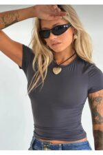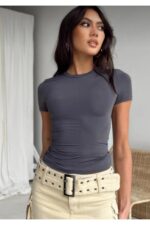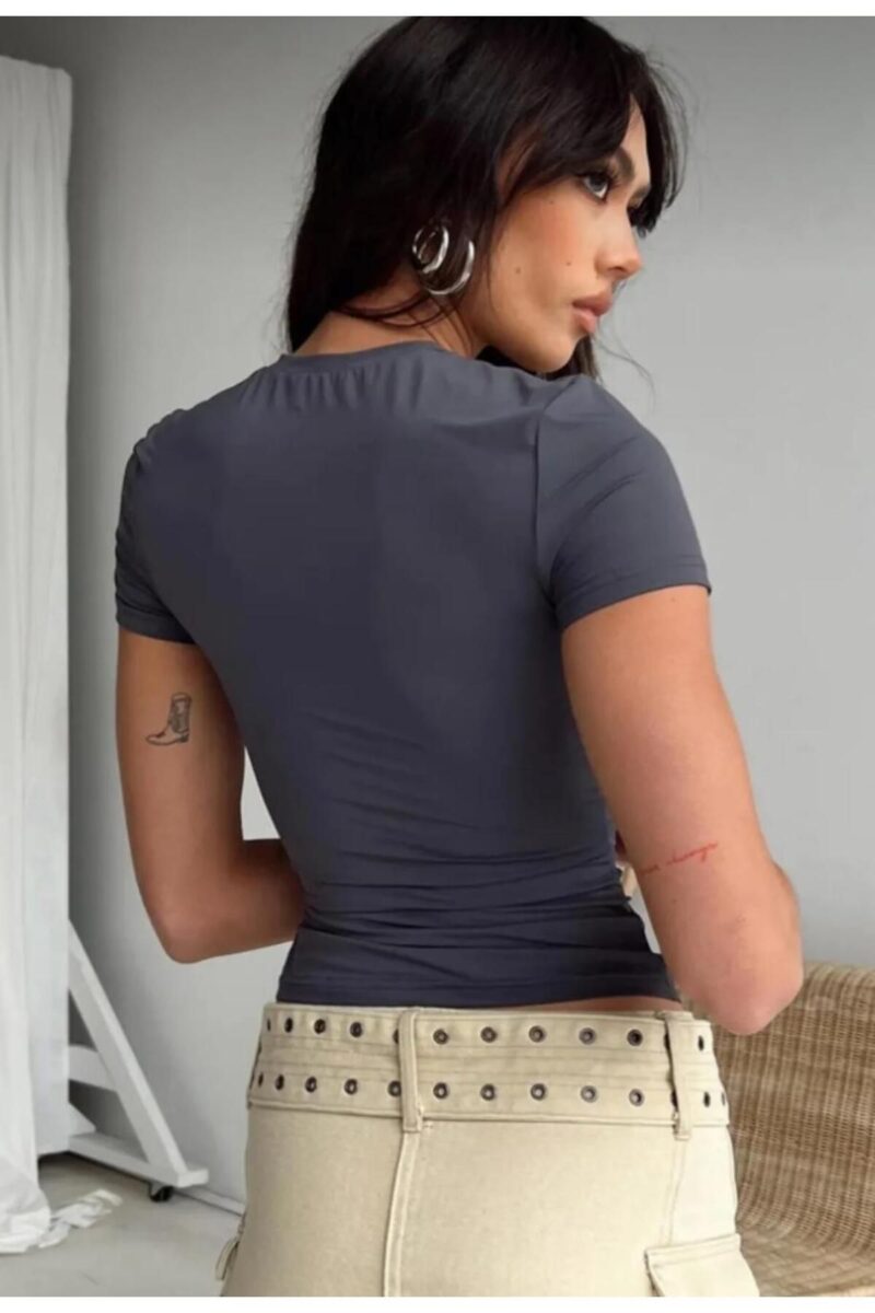 🛍 MEGOMEL Bisiklet Yaka Basic Kısa Kollu Esnek Body Full Likralı Tam kalıp