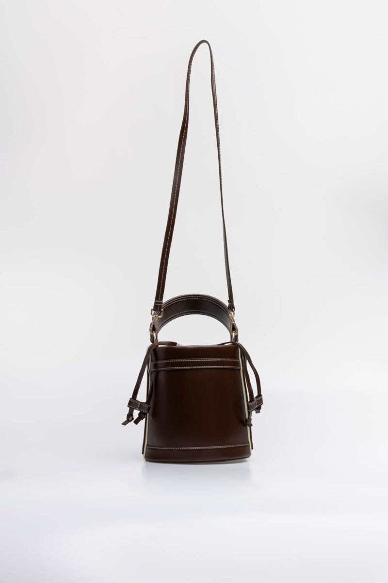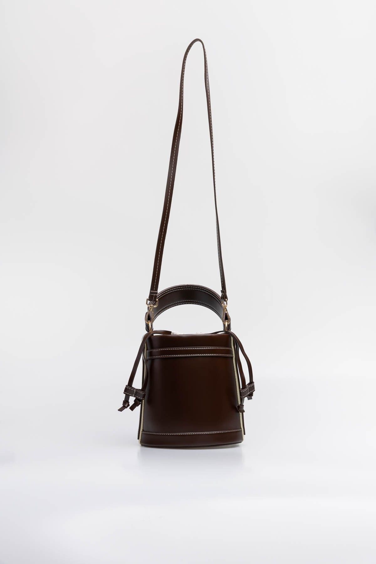melis collections Lotus Kahve Silindir Şekilli Çift Saplı Büzgülü Kapamalı Kadın El ve Omuz Çantası