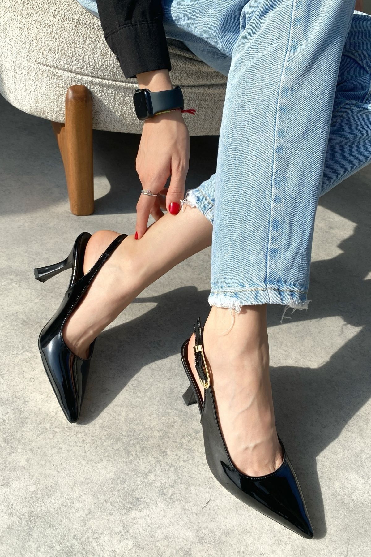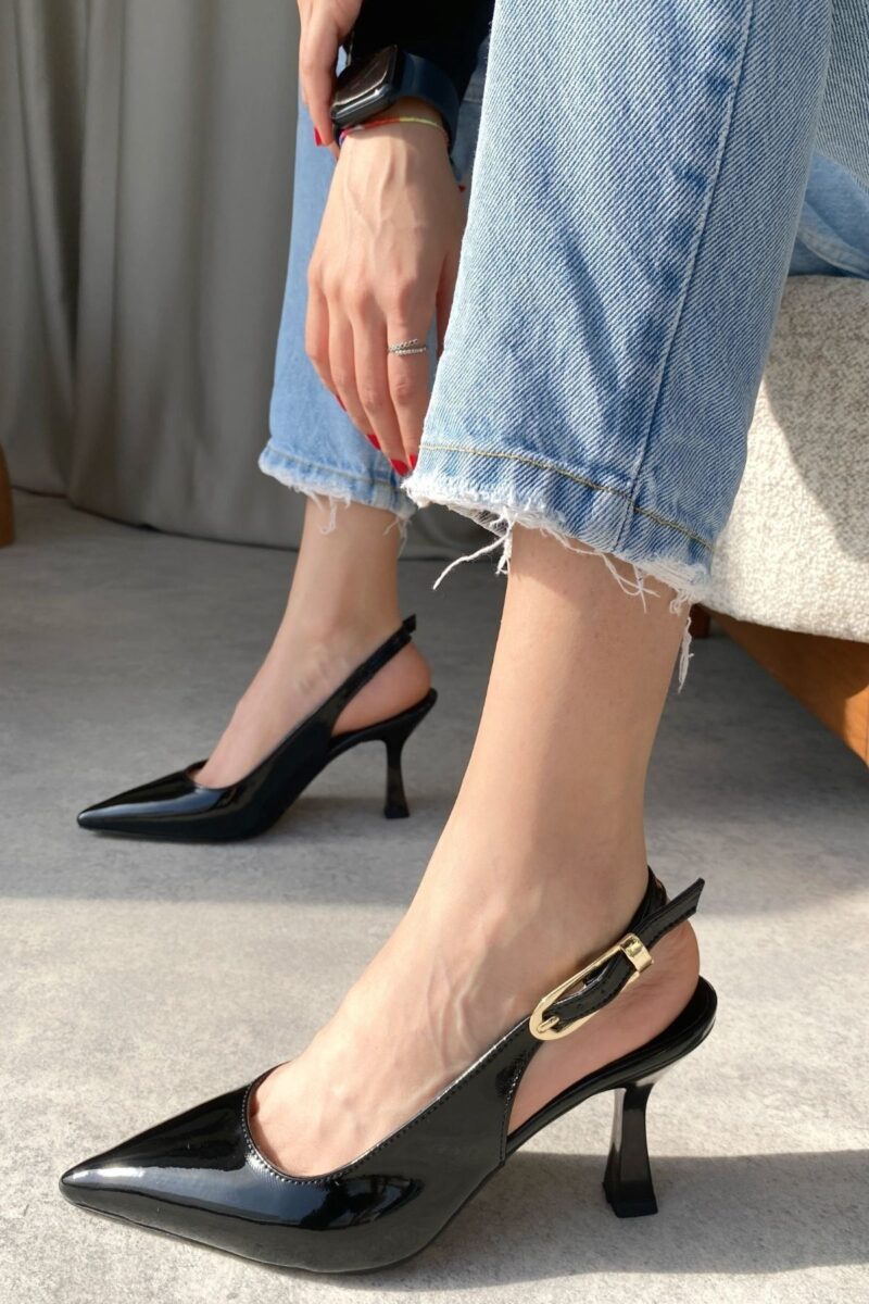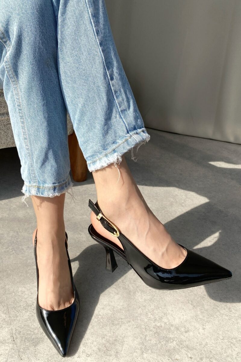🛍 MODAADAM Kadın Ovis Sivri Topuklu Ayakkabı – siyah-rugan