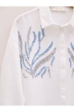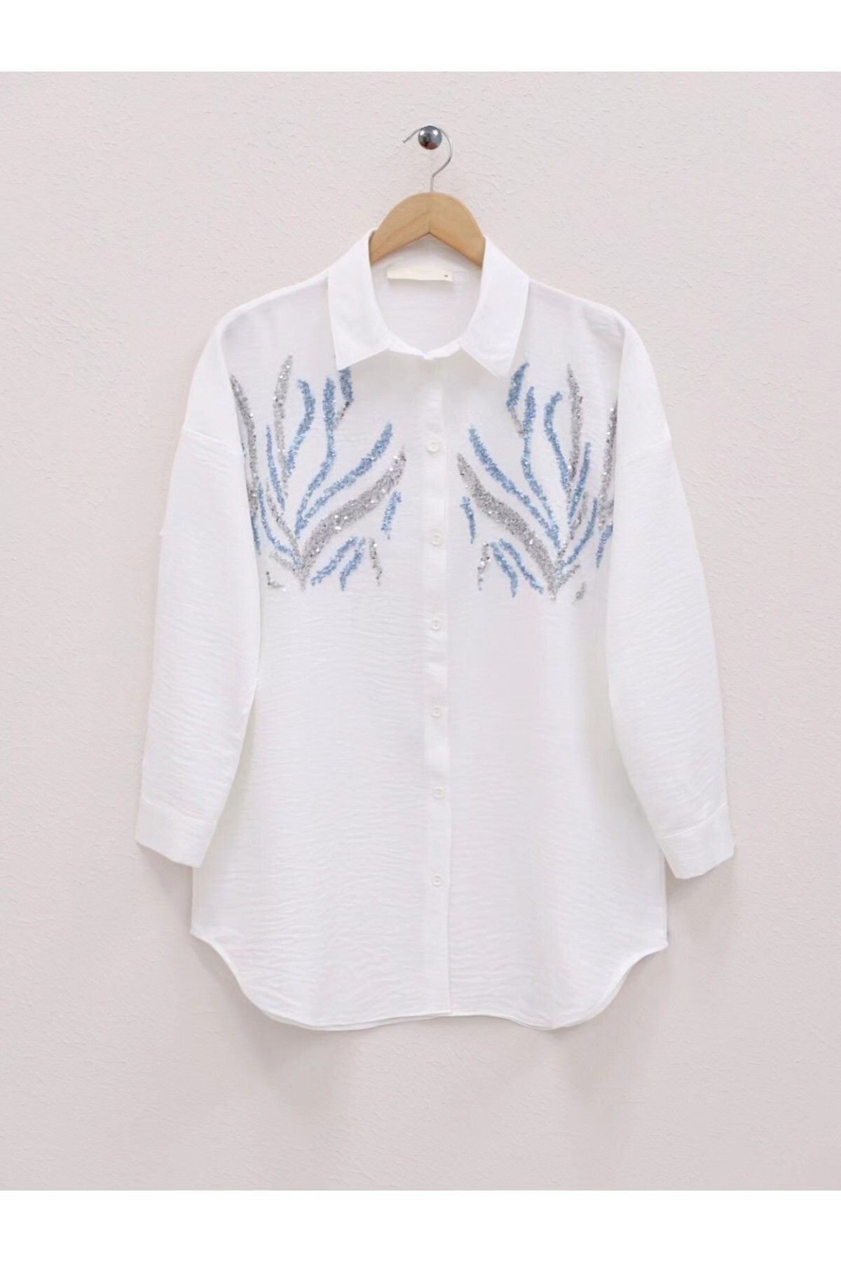 Modamorfo Önü Pul Payetli Uzun Gömlek -beyaz