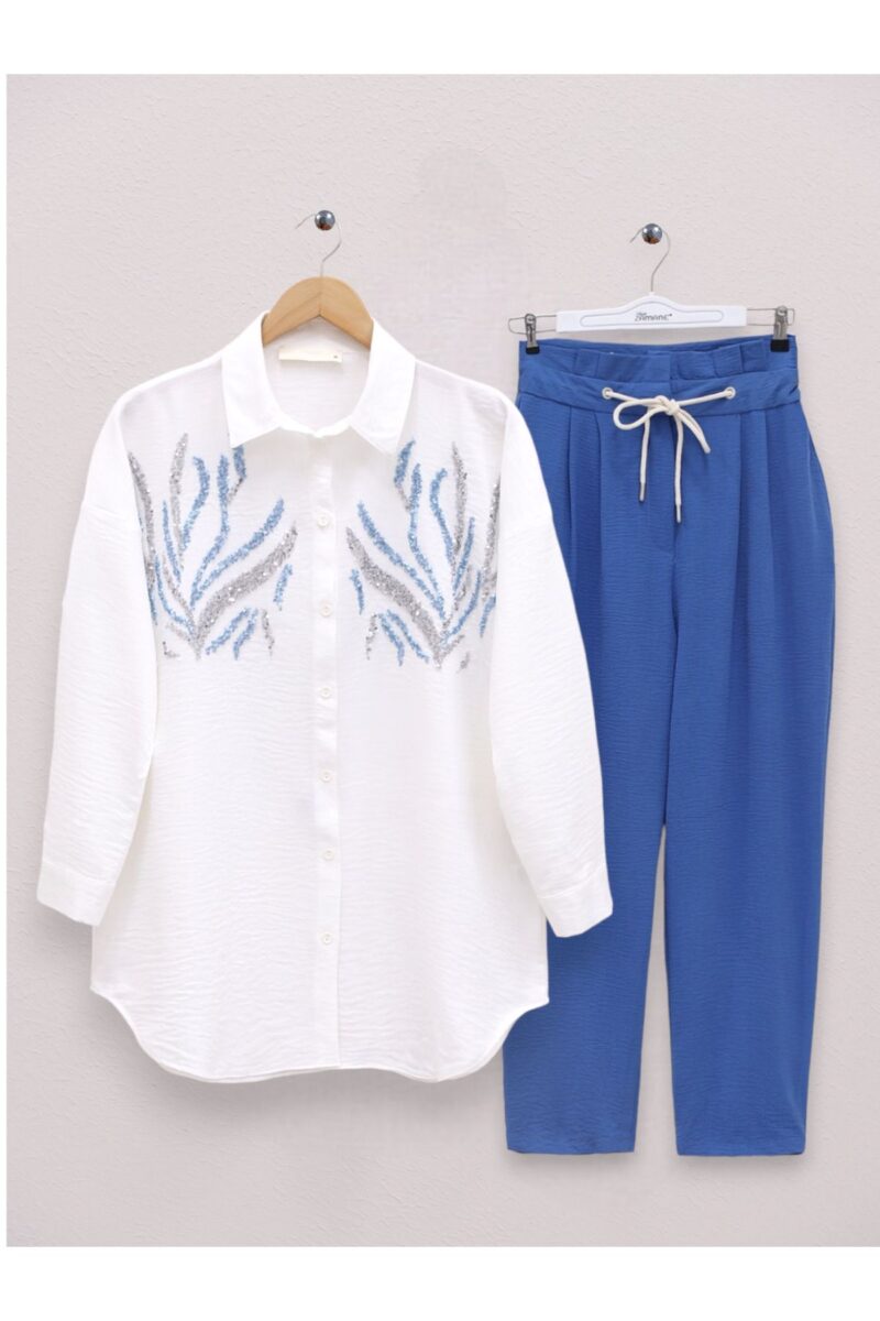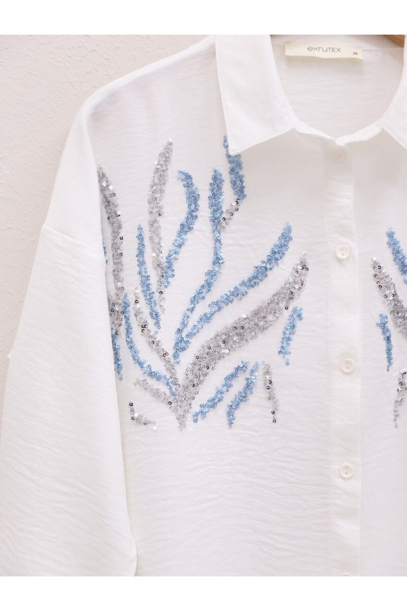 🛍 Modamorfo Önü Pul Payetli Uzun Gömlek -beyaz
