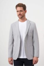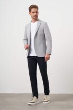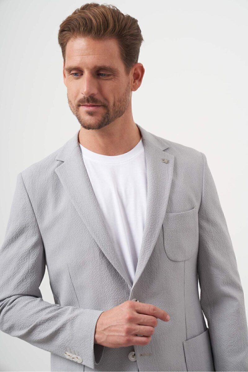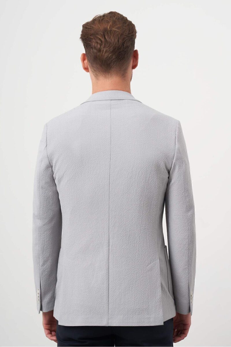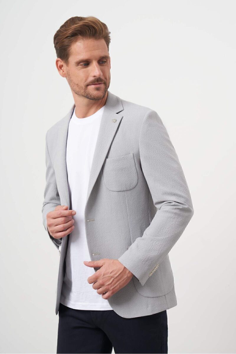 Morven Erkek Gri Dokuma Gofre Slim Fit Torba Cep Mono Yaka Spor Ceket