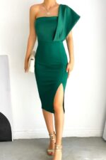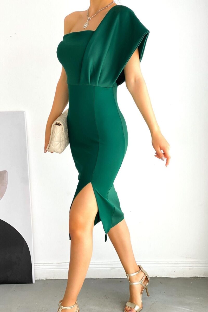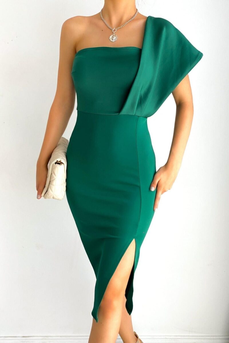 🛍 Mossta Tek Omuz Yırtmaçlı Elbise Yeşil