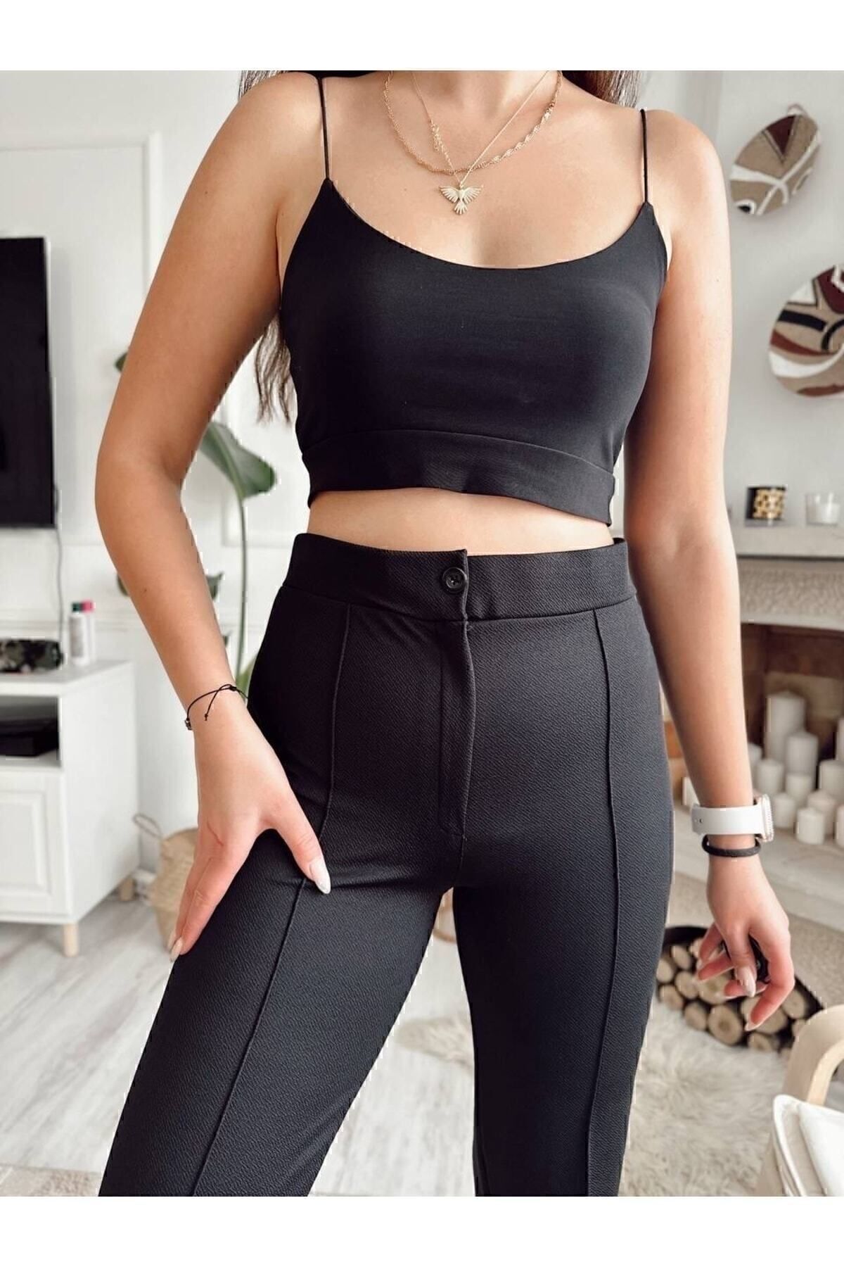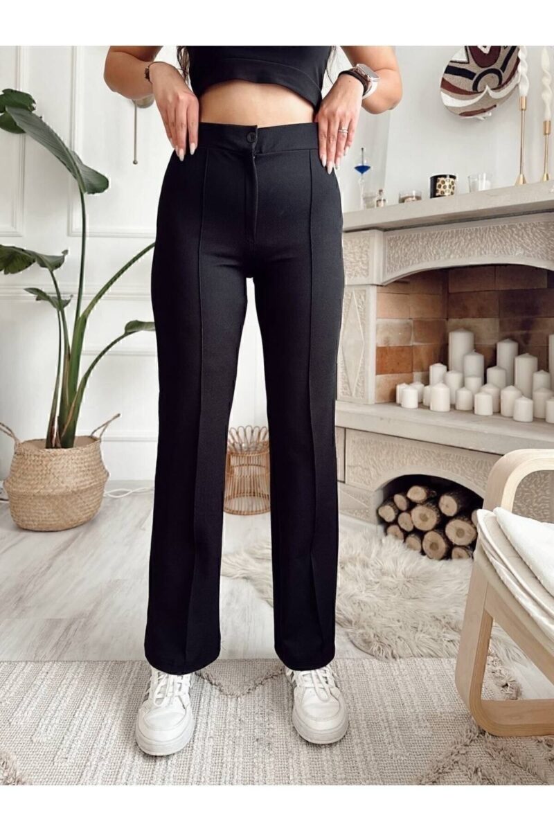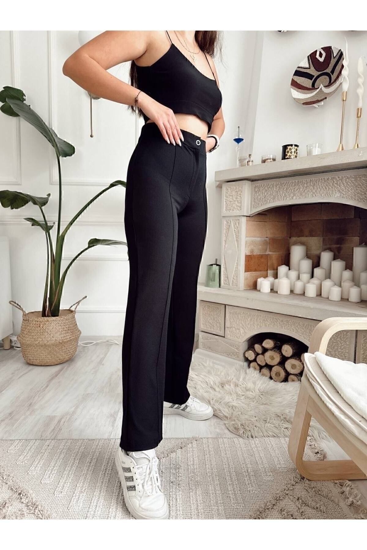 🛍 Nevruz Siyah Ispanyol Paça Likralı Palazzo Pantolon