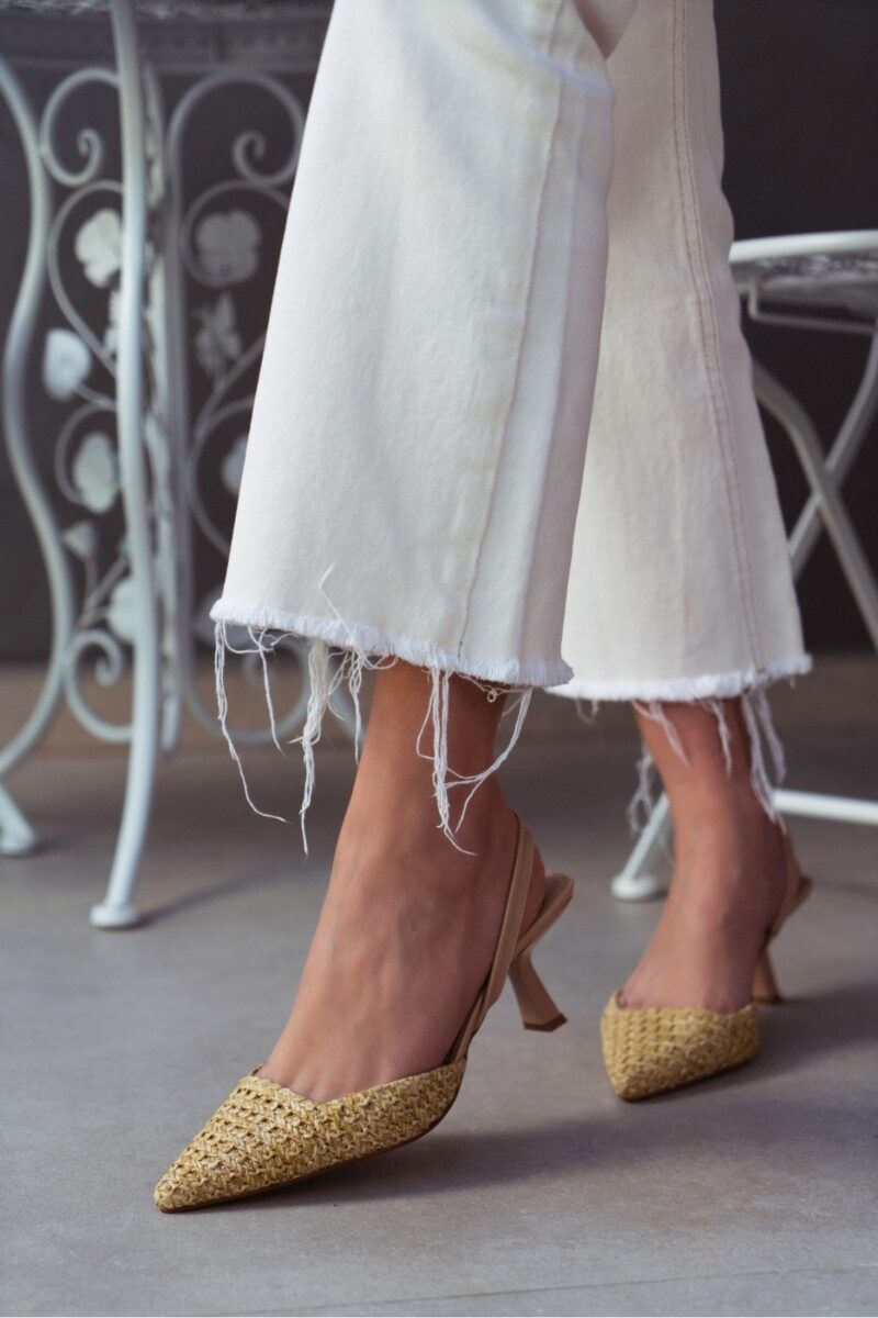 🛍 NİŞANTAŞI SHOES Ponnie Bej Hasır Sivri Burun Kadın Topuklu Ayakkabı
