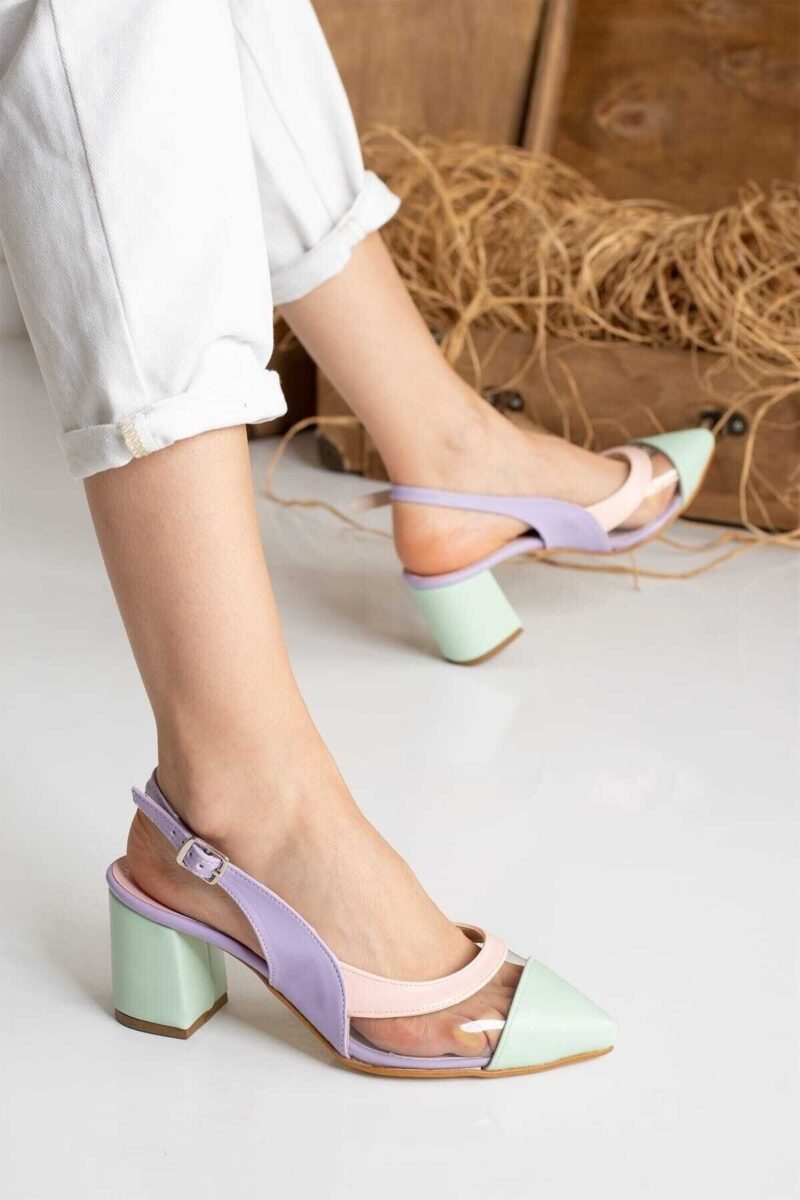 🛍 Parparastil Yeşil Burun Topuklu Şık Ve Rahat Kadın Topuklu Sandalet