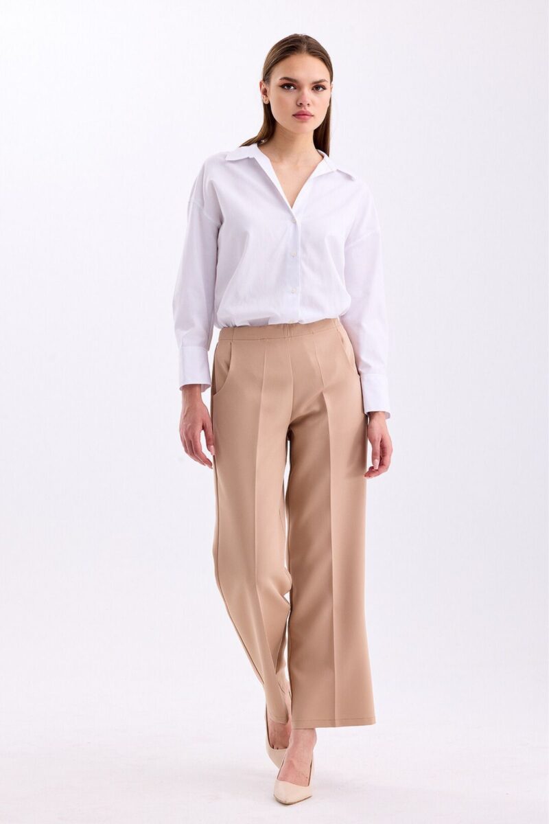 PASTELASTORE Arkadan Lastikli Yüksek Bel Geniş Paça Palazzo Kadın Rahat Kumaş Pantolon 2345
