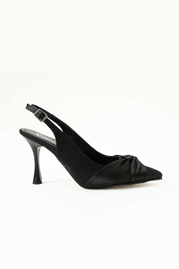 Pazzyonez Kadın Siyah Mais Saten Ön Düğüm Detay Abiye Sitiletto Klasik Topuklu Ayakkabı