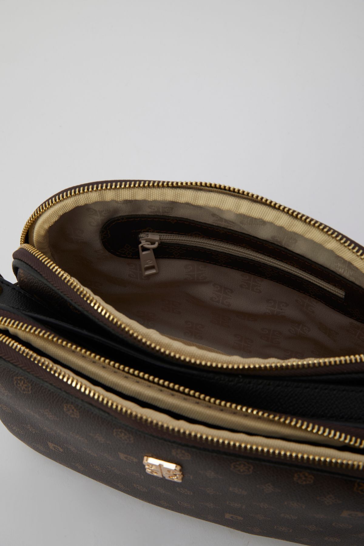 🛍 کیف شانه زنانه مونوگرام قهوه ای 05Po22Y1536