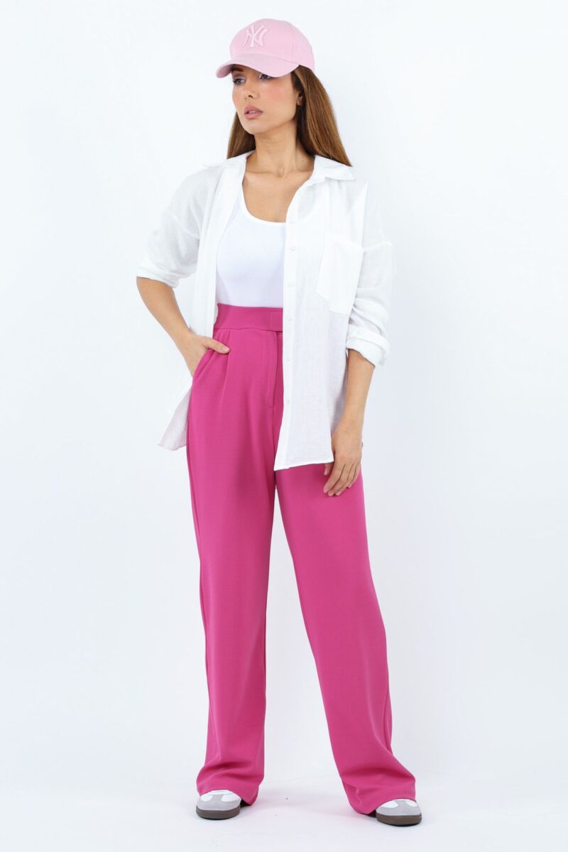 🛍 Ritnice Line Kadın Likralı Cırt Kapama Fuşya Palazzo Pantolon