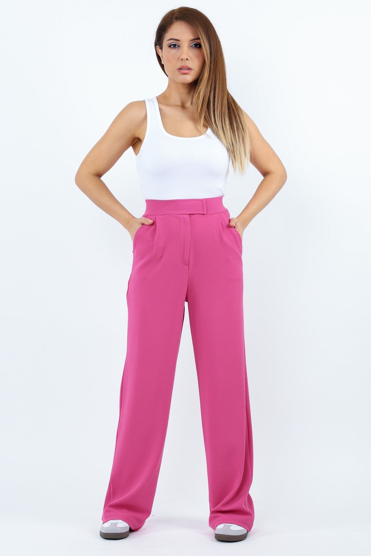 Ritnice Line Kadın Likralı Cırt Kapama Fuşya Palazzo Pantolon