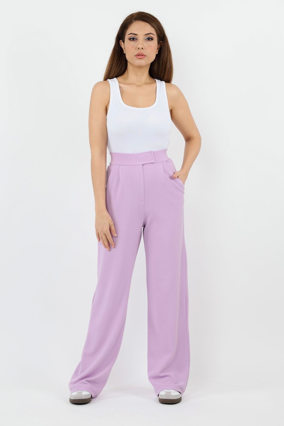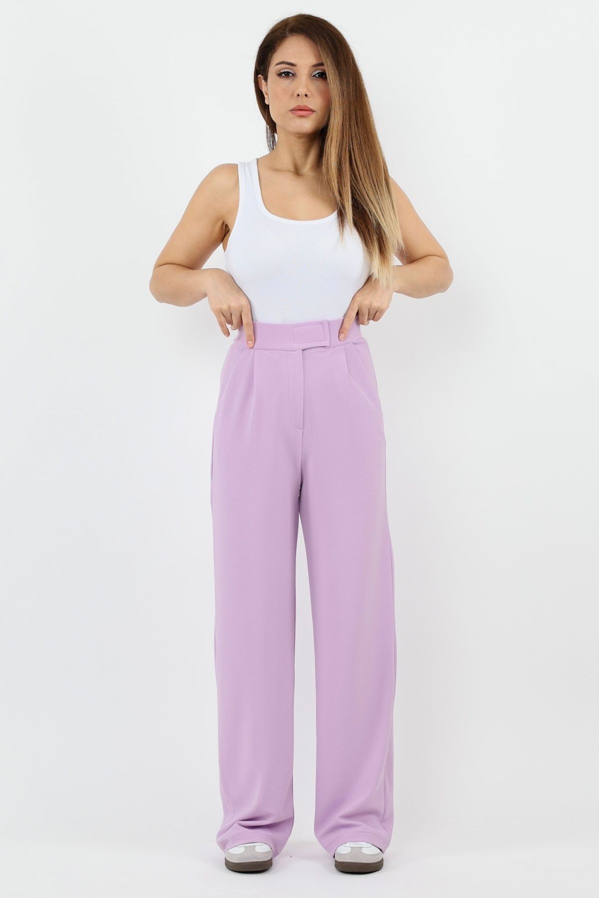 🛍 Ritnice Line Kadın Likralı Cırt Kapama Lila Palazzo Pantolon