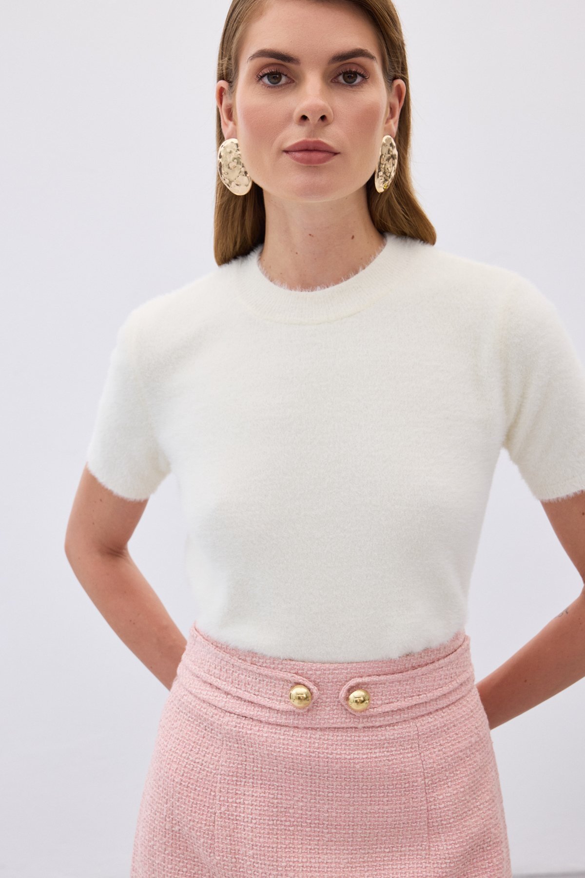 🛍 لباس بافتنی آستین کوتاه ریشو Ecru