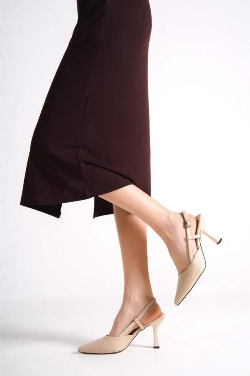 serelshoes Kadın Topuklu Ayakkabı Arkası Açık Direkli Tokalı Topuk 9 cm
