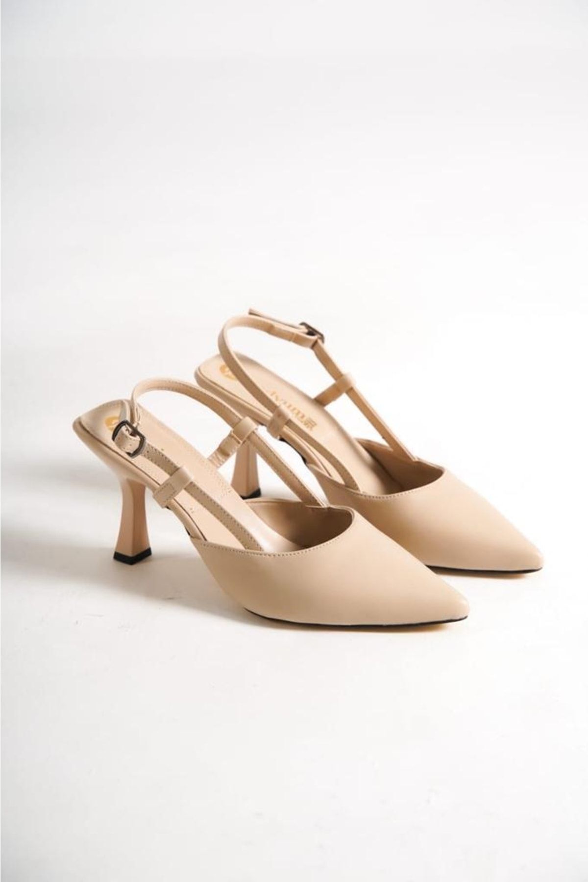 🛍 serelshoes Kadın Topuklu Ayakkabı Arkası Açık Direkli Tokalı Topuk 9 cm