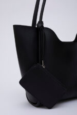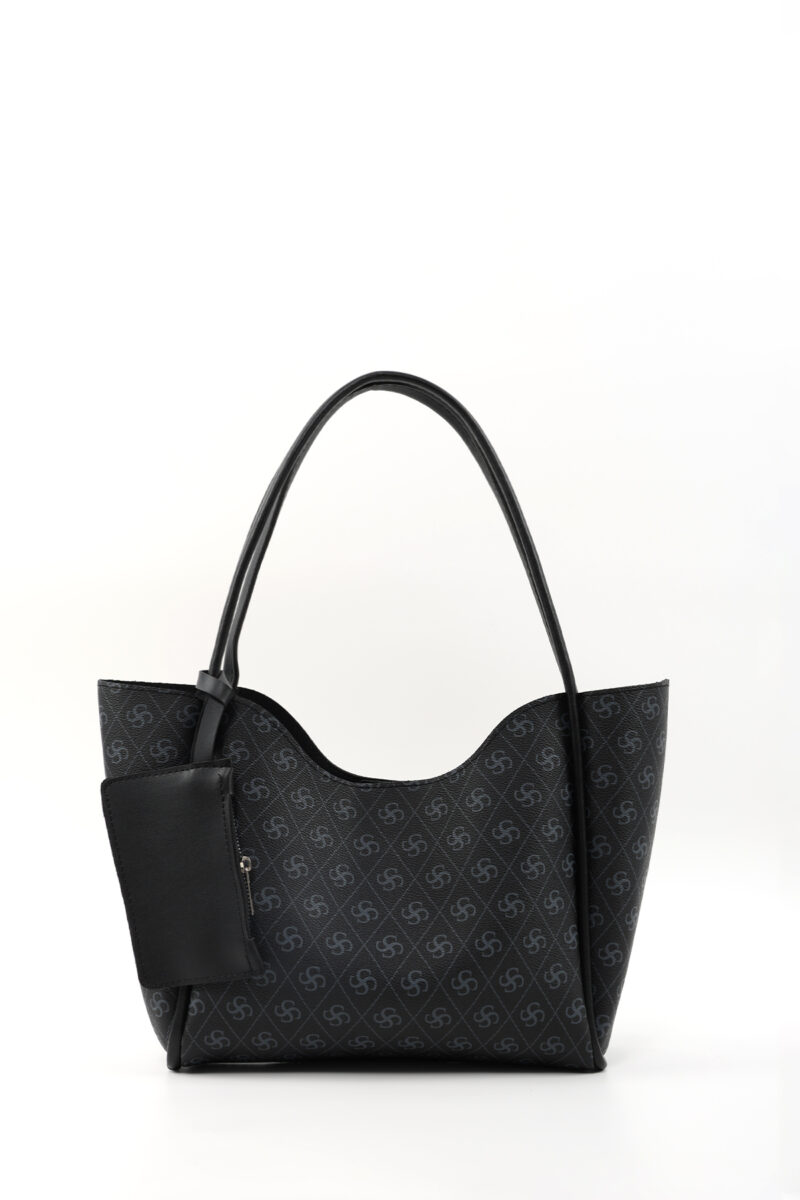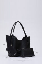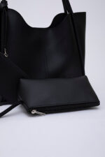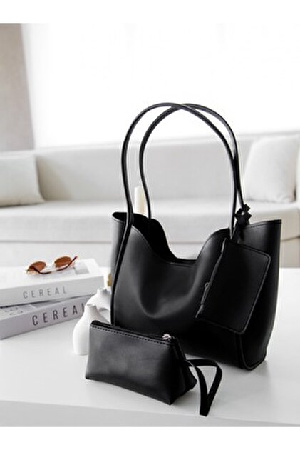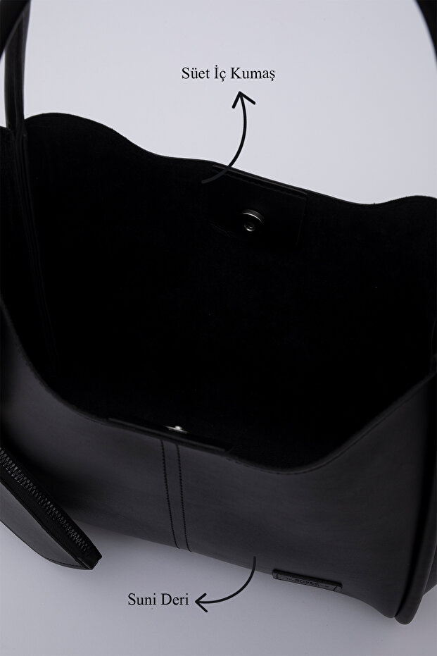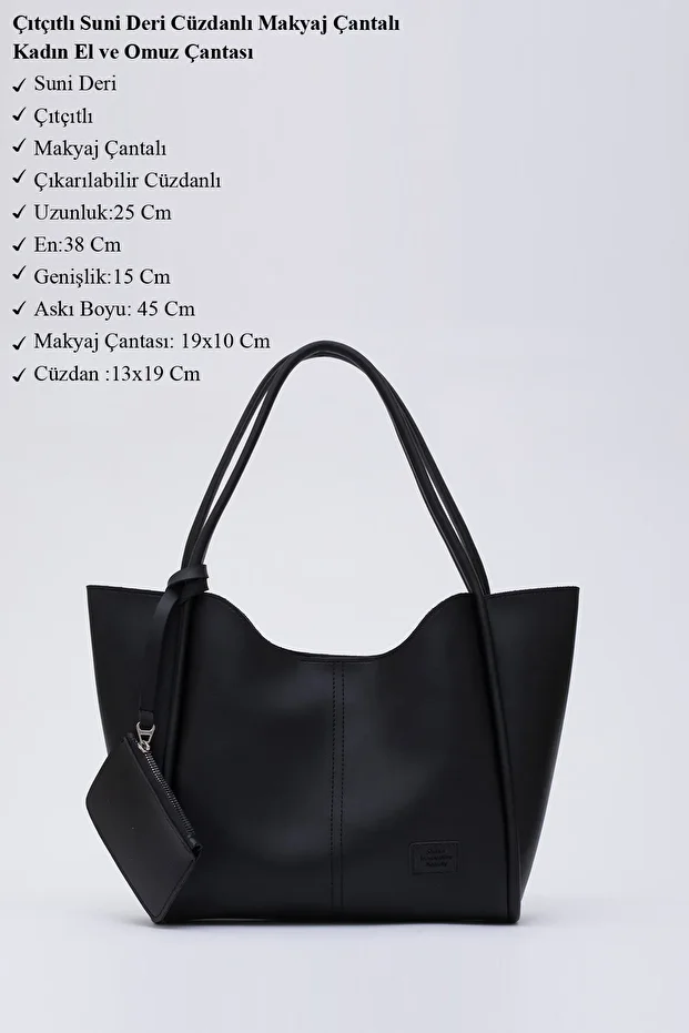 🛍 Shaka Siyah Shk108 Çıtçıtlı Suni Deri Cüzdanlı Makyaj Çantalı Kadın El Ve Omuz Çantası