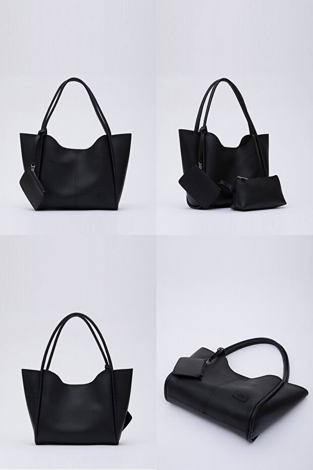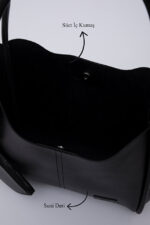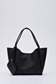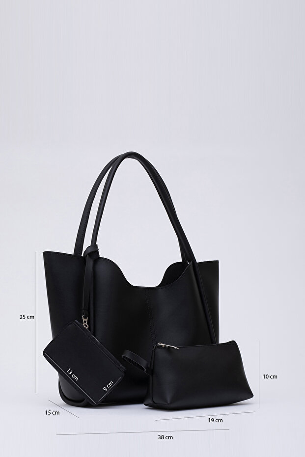 Shaka Siyah Shk108 Çıtçıtlı Suni Deri Cüzdanlı Makyaj Çantalı Kadın El Ve Omuz Çantası