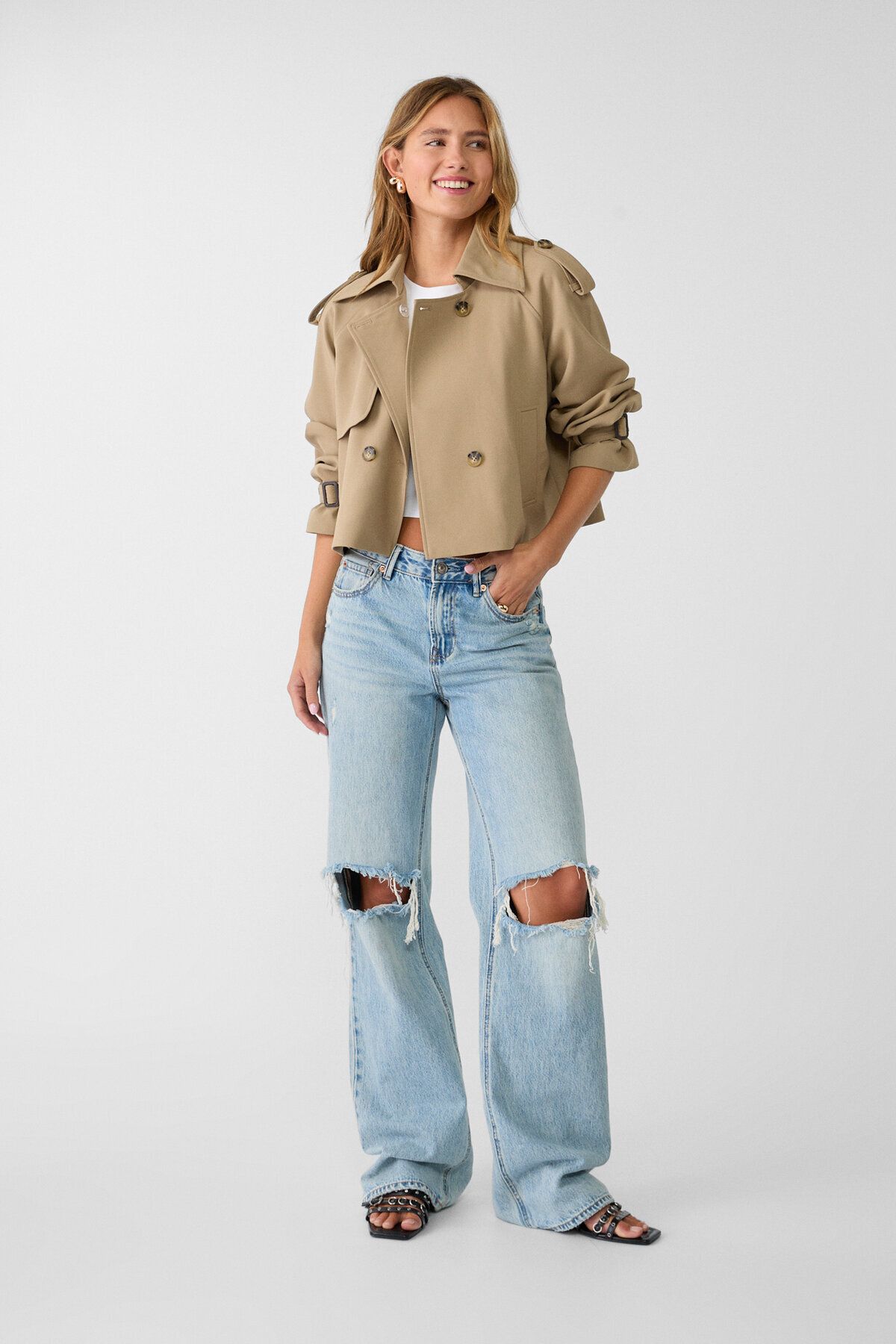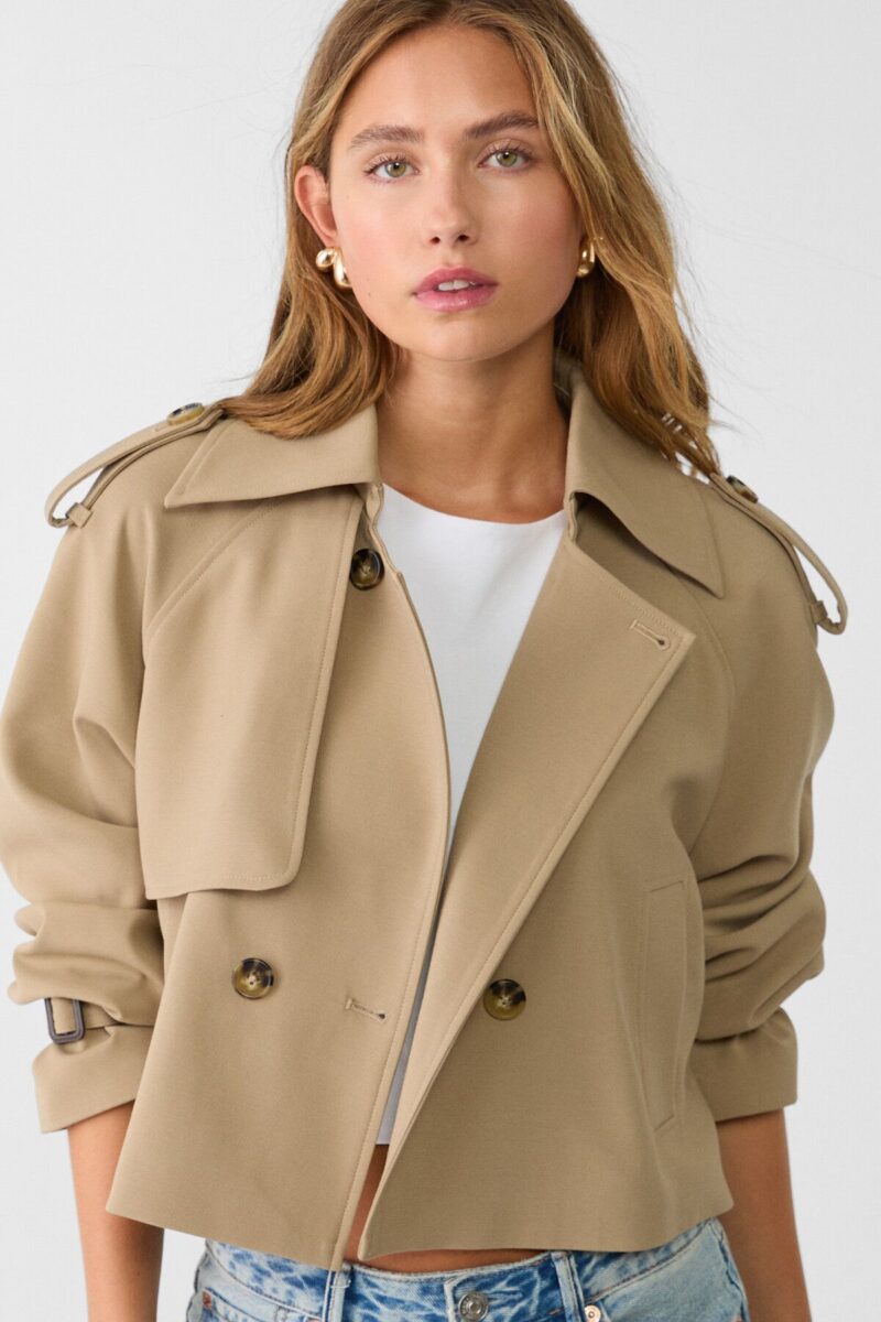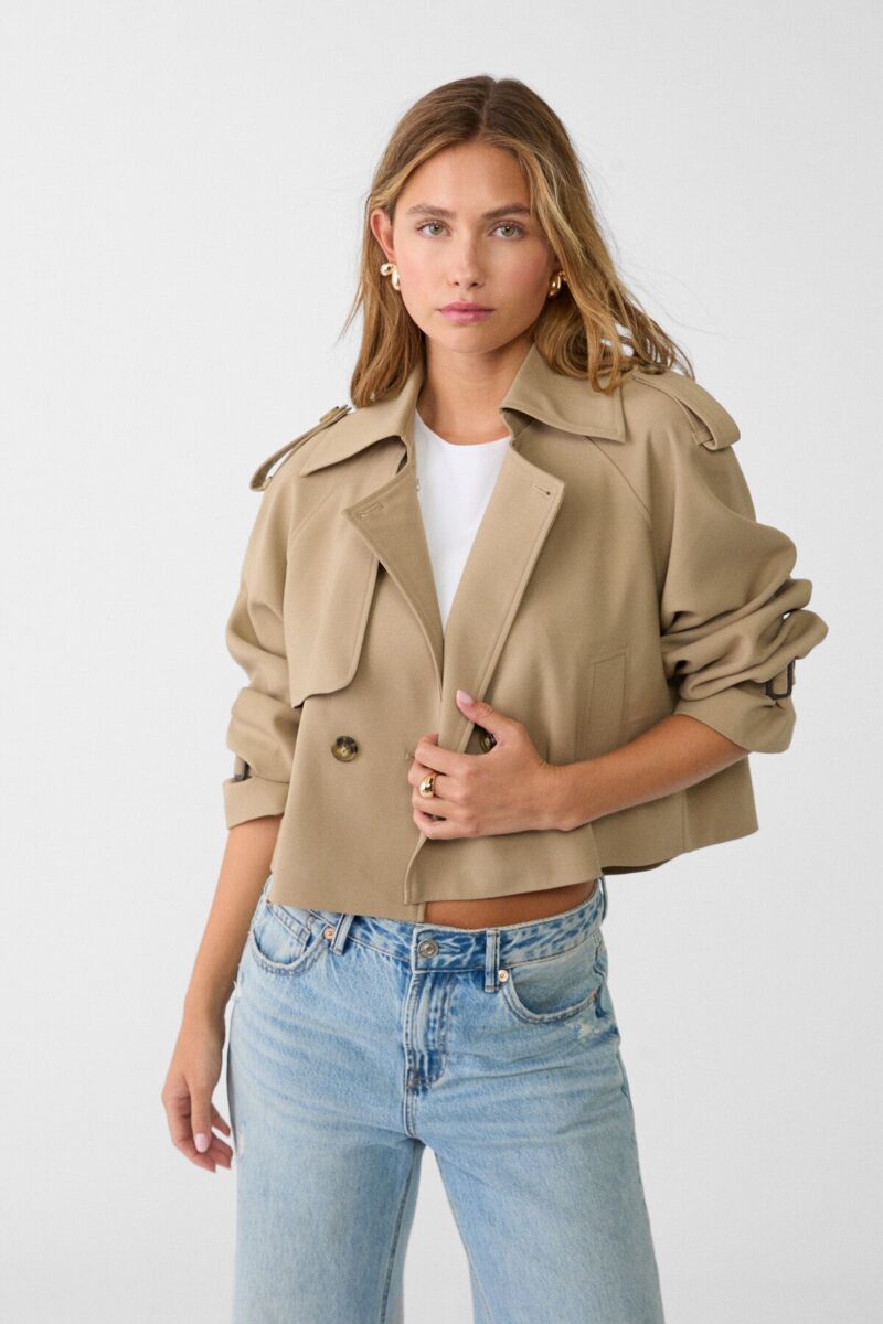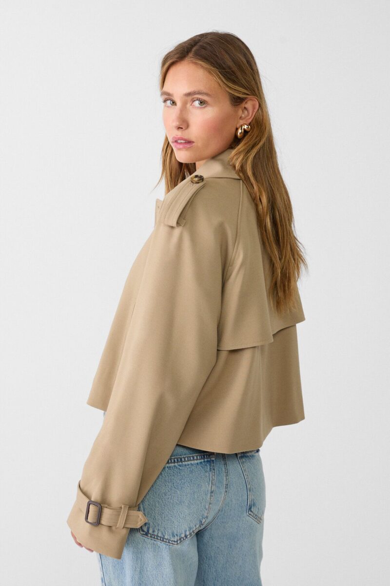 🛍 Stradivarius Kısa Ve Dökümlü Kumaş Trençkot
