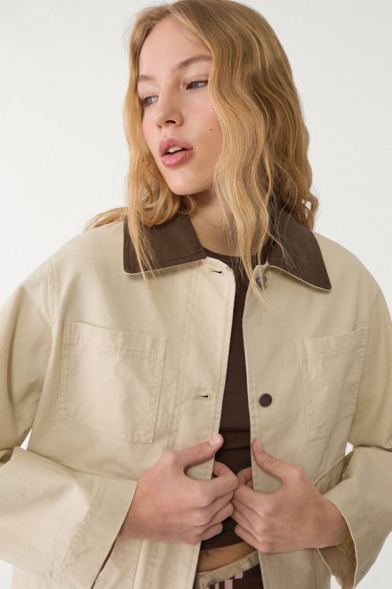 🛍 Stradivarius Kontrast yakalı ve cepli ceket