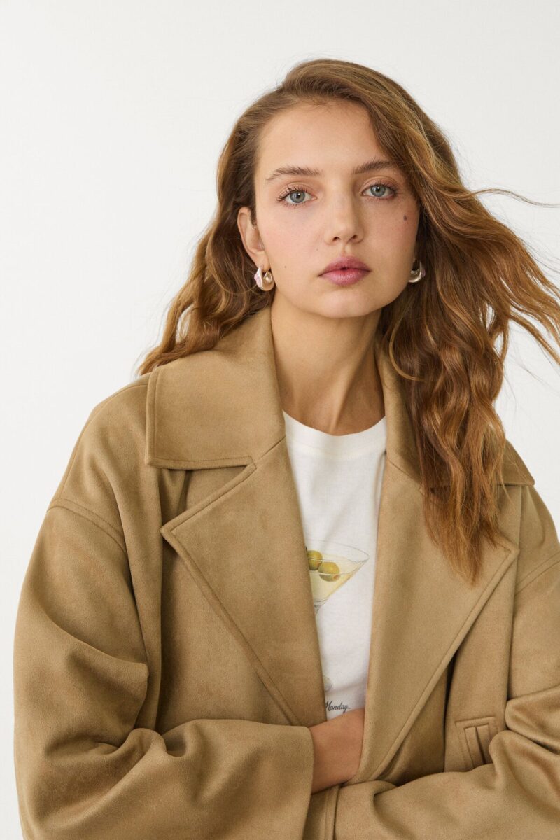 🛍 Stradivarius Kruvaze suni kürk ceket