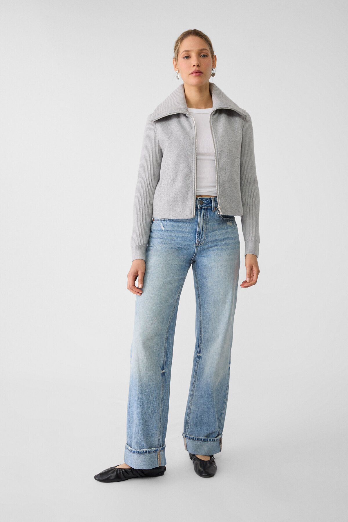 🛍 Stradivarius Yumuşak ve kontrast detaylı örme ceket