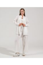 thepery The Pery Beyaz Keten Pantolon Gömlek Takım
