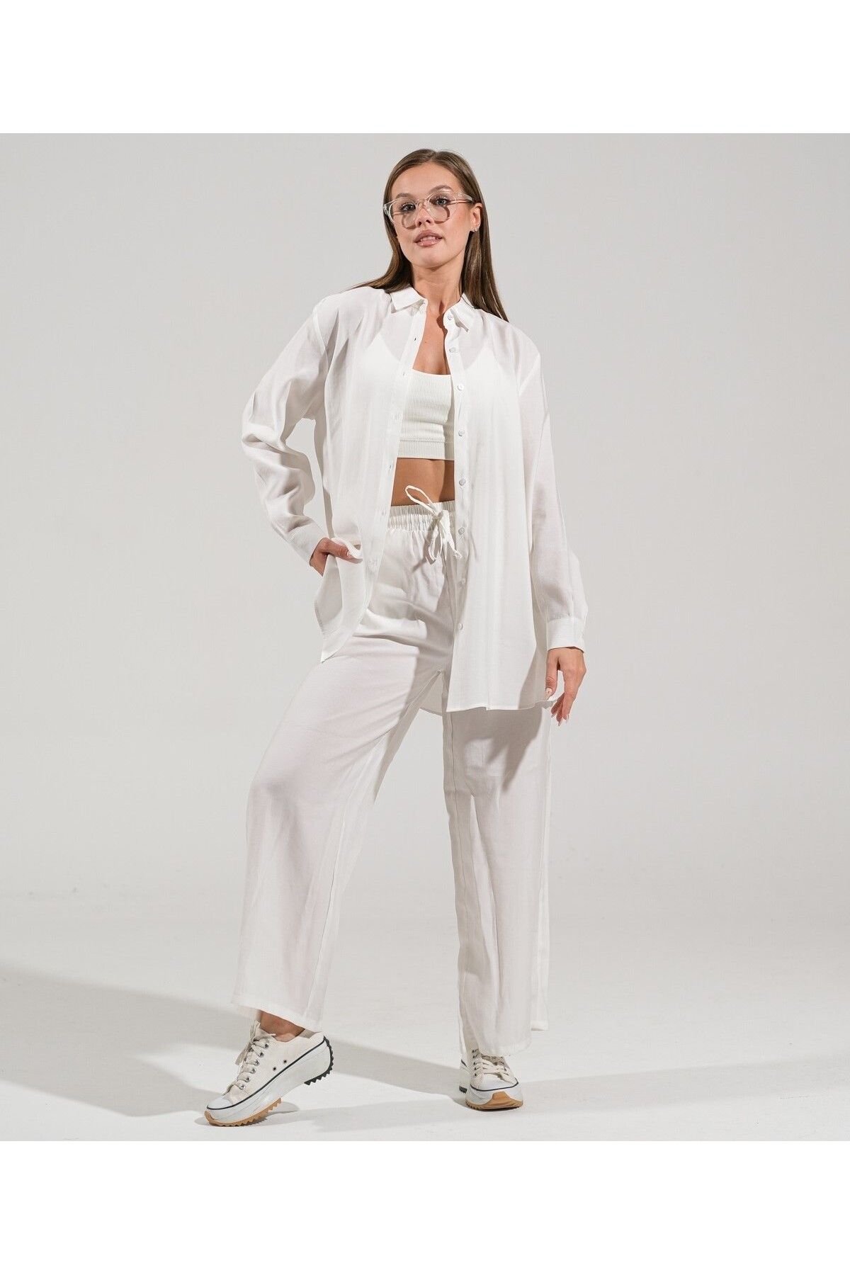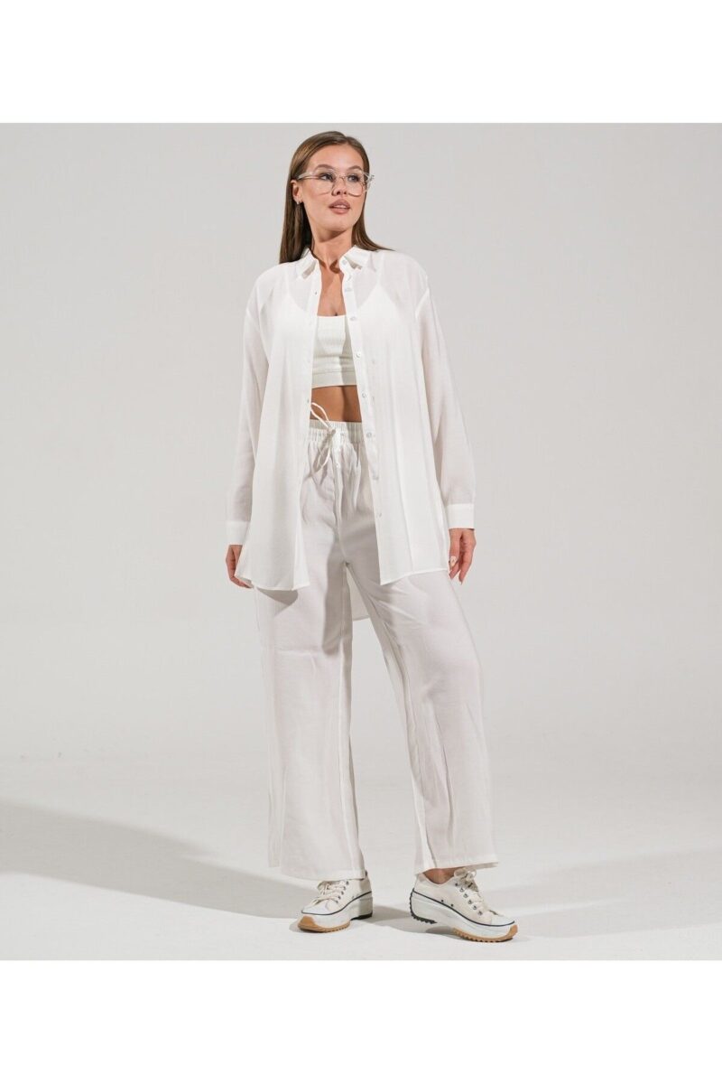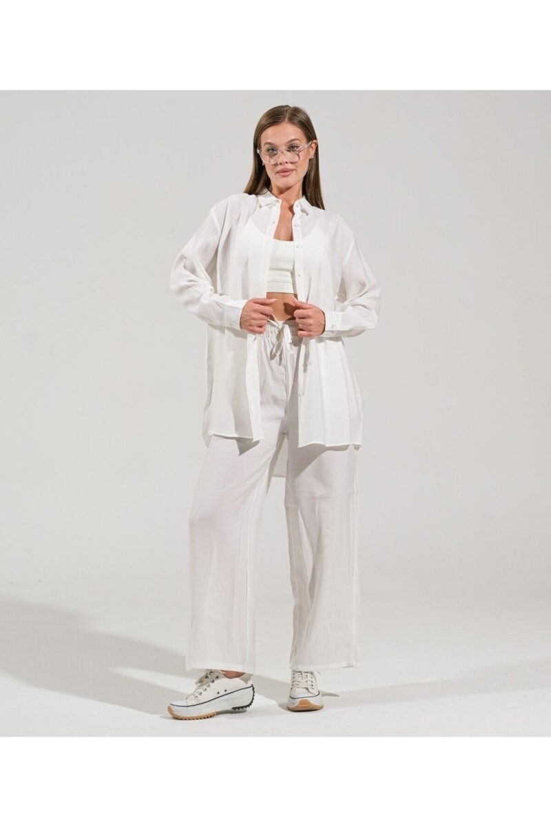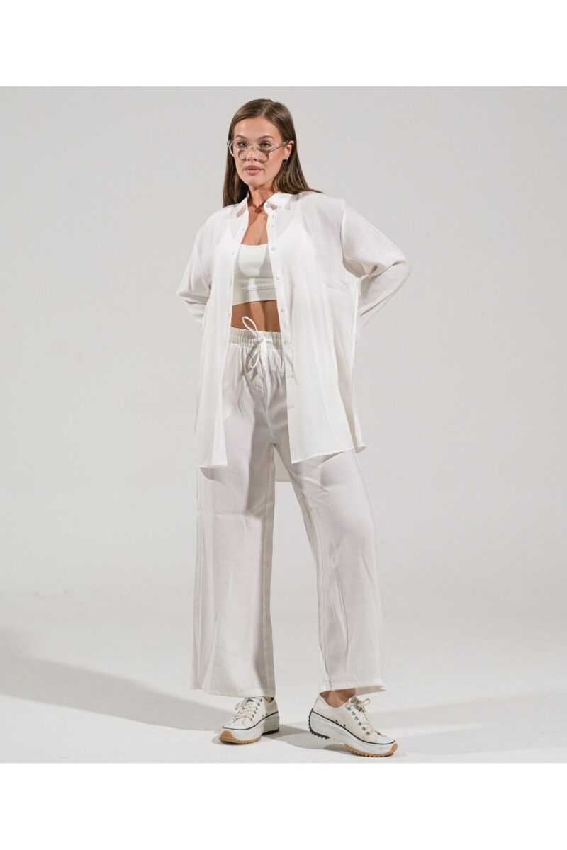 🛍 thepery The Pery Beyaz Keten Pantolon Gömlek Takım