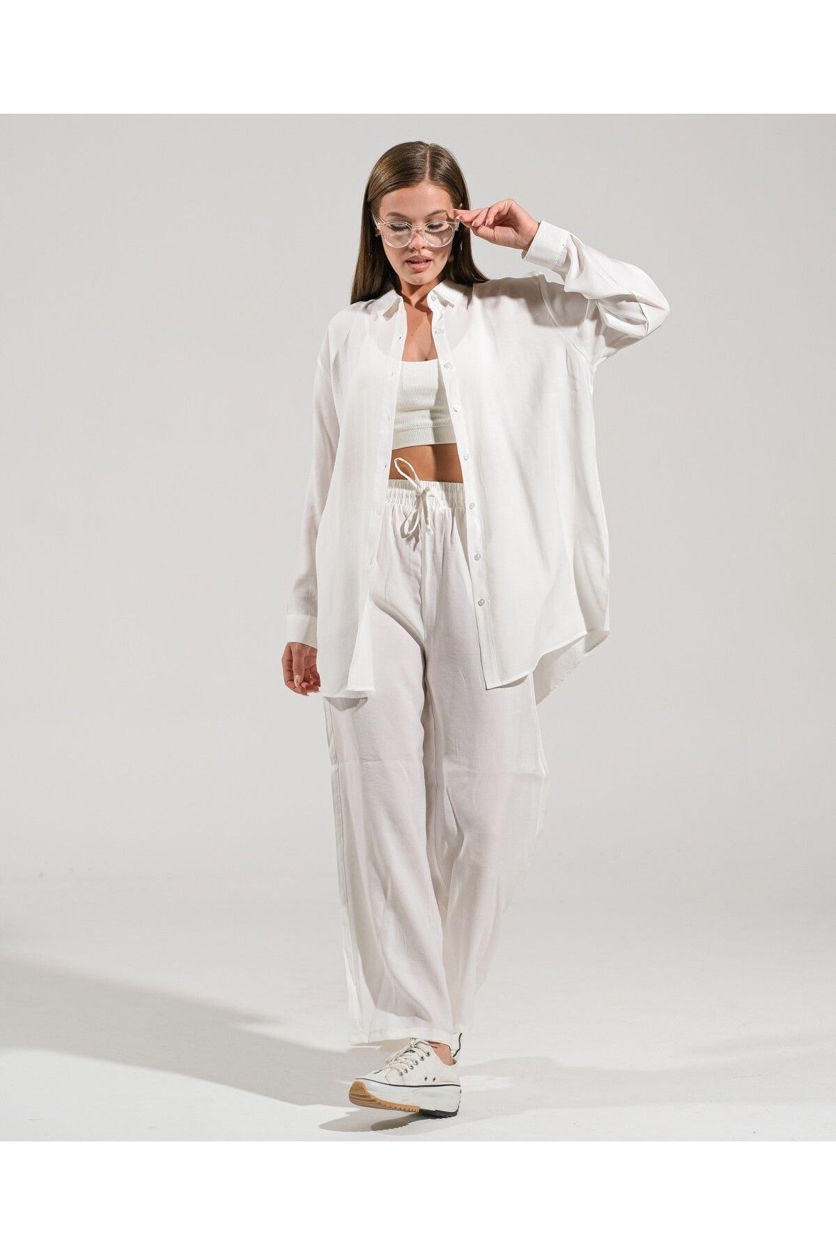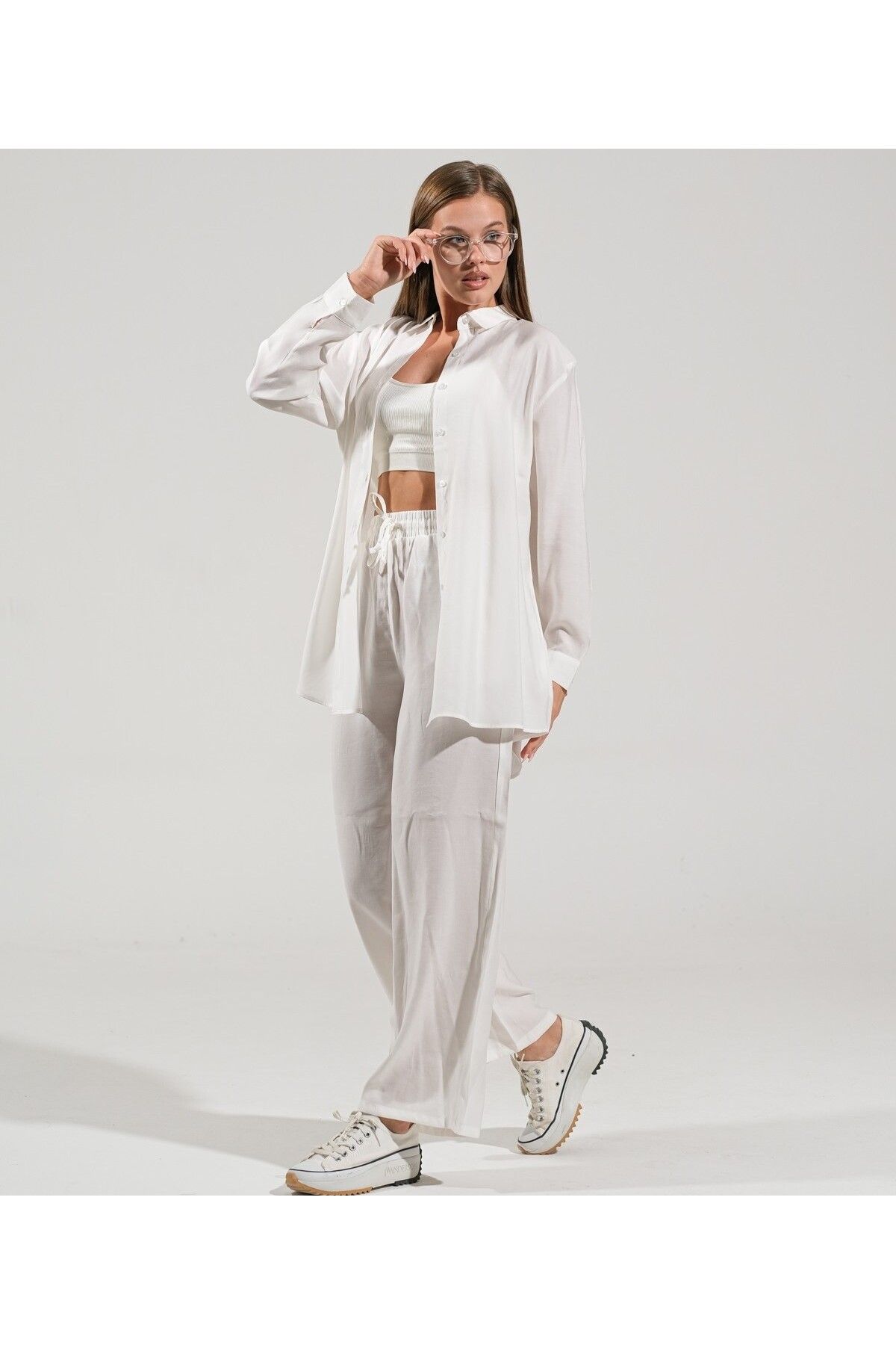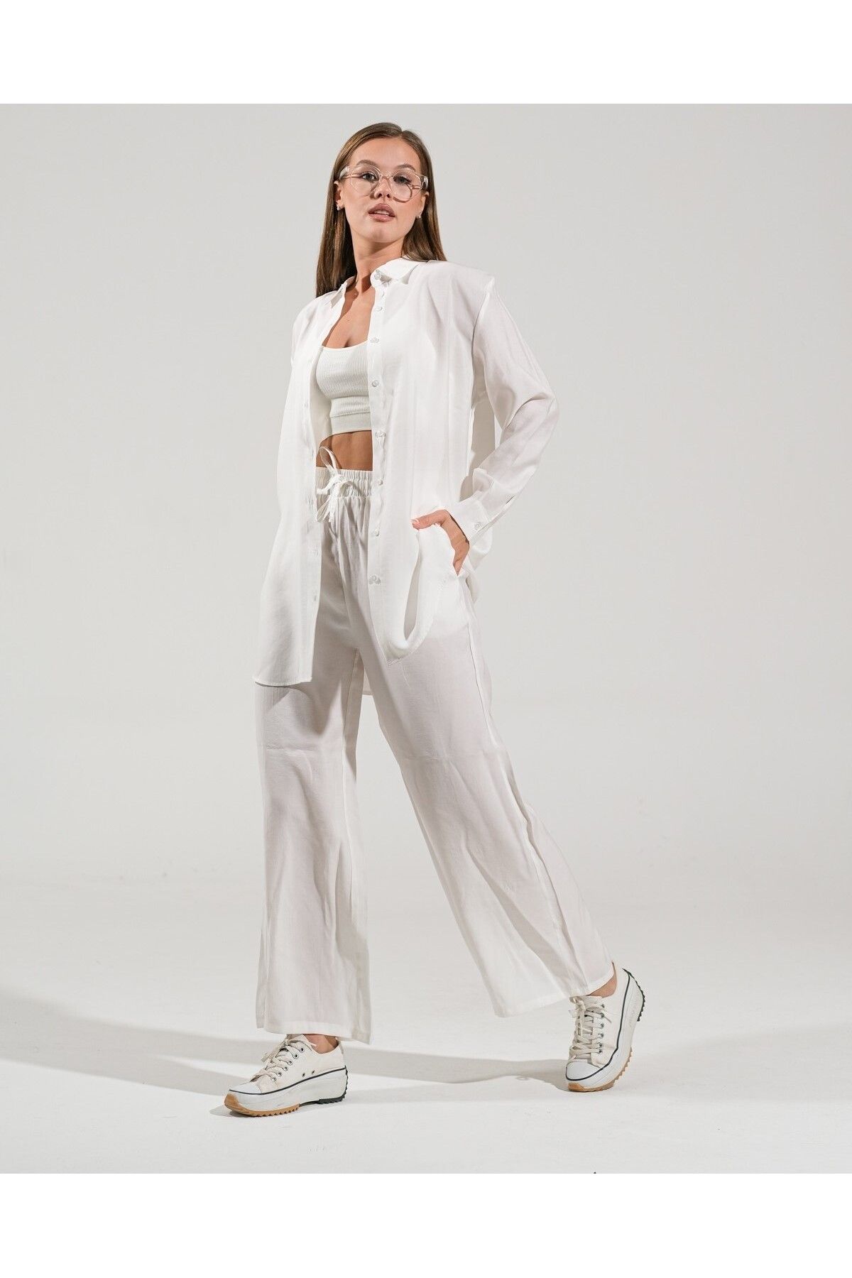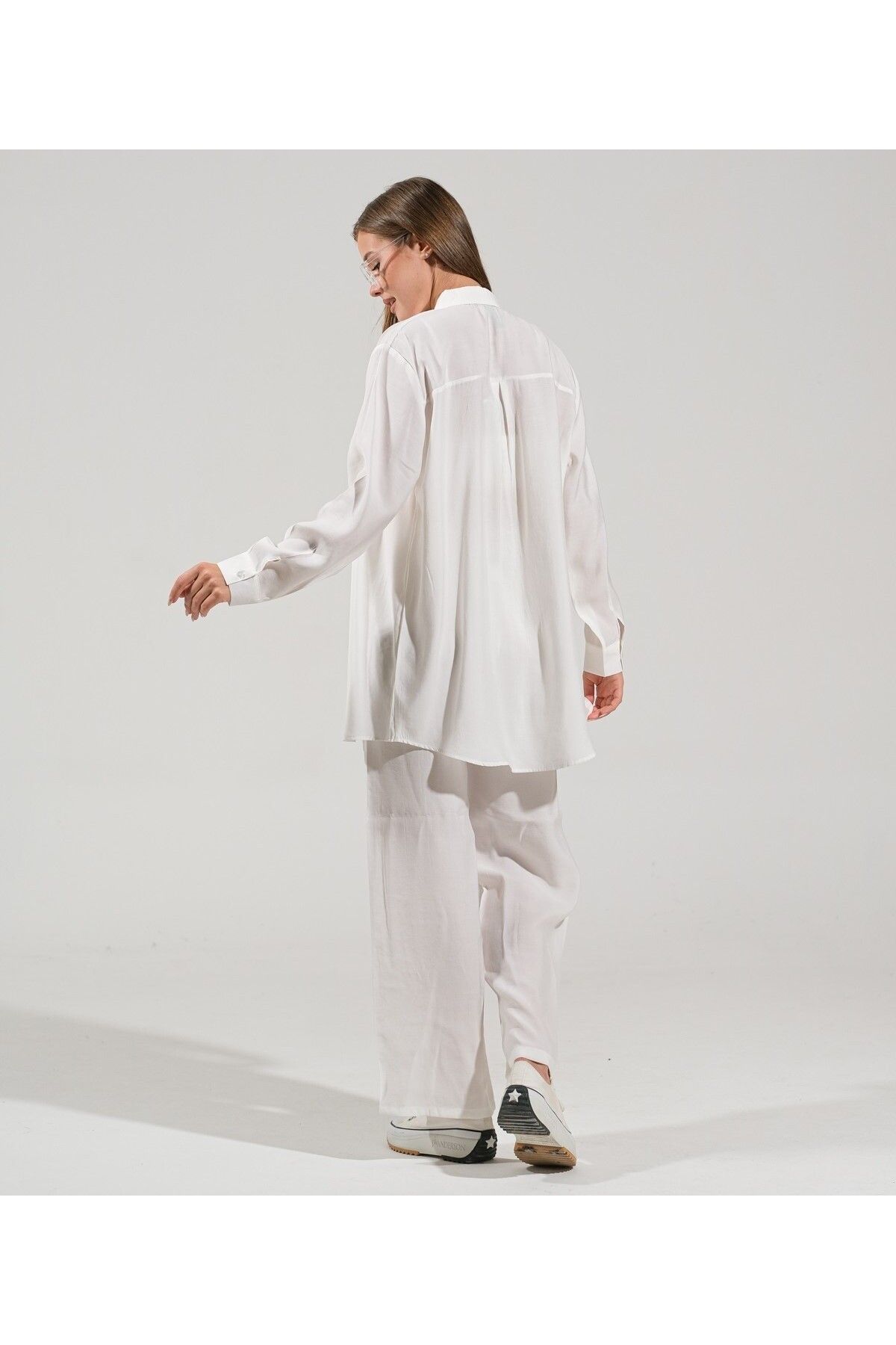 🛍 thepery The Pery Beyaz Keten Pantolon Gömlek Takım