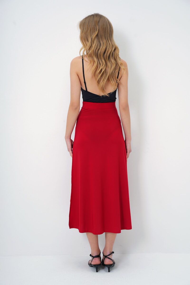 🛍 Trend Alaçatı Stili Kadın Kırmızı Beli Lastikli Derin Yırtmaçlı Sandy Kumaş Etek ALC-X13464