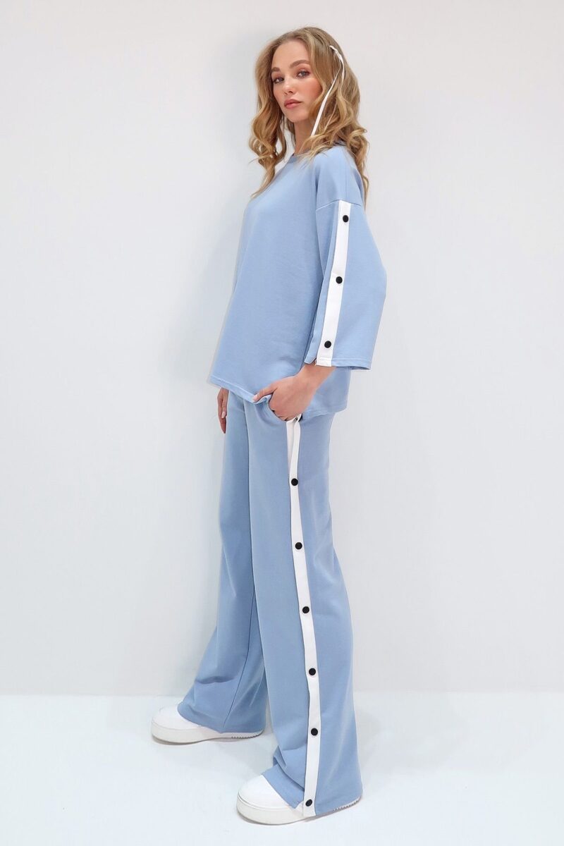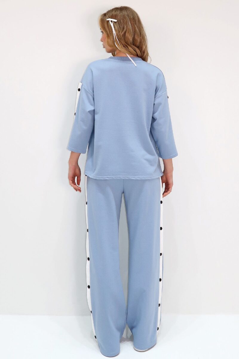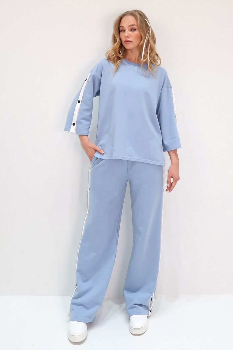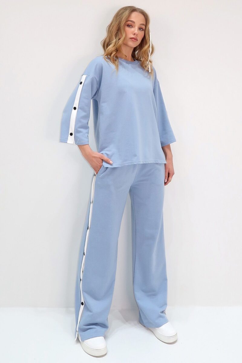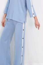 Trend Alaçatı Stili Kadın Mavi Bisiklet Yaka Çıtçıt Kapamalı İki İplik Eşofman Takım ALC-X13486