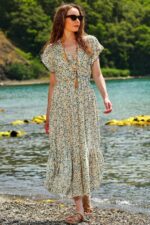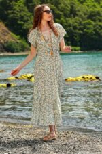 🛍 Trend Alaçatı Stili Kadın Mint Çiçek Desenli Kruvaze Maxı Boy Elbise ALC-X4373