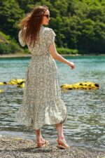 Trend Alaçatı Stili Kadın Mint Çiçek Desenli Kruvaze Maxı Boy Elbise ALC-X4373