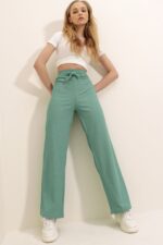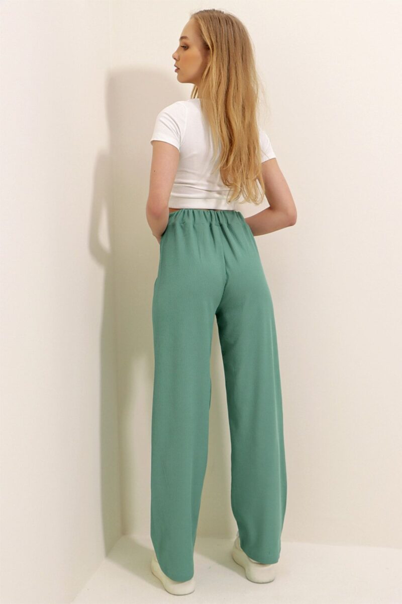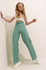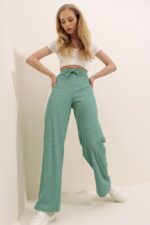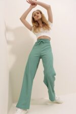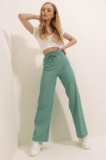 🛍 Trend Alaçatı Stili Kadın Mint Yüksek Bel Fitilli Wide Leg Pantolon ALC-X8141